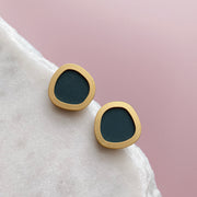 Beautiful petrol blue & brass stud earrings, perfect for everyday wear