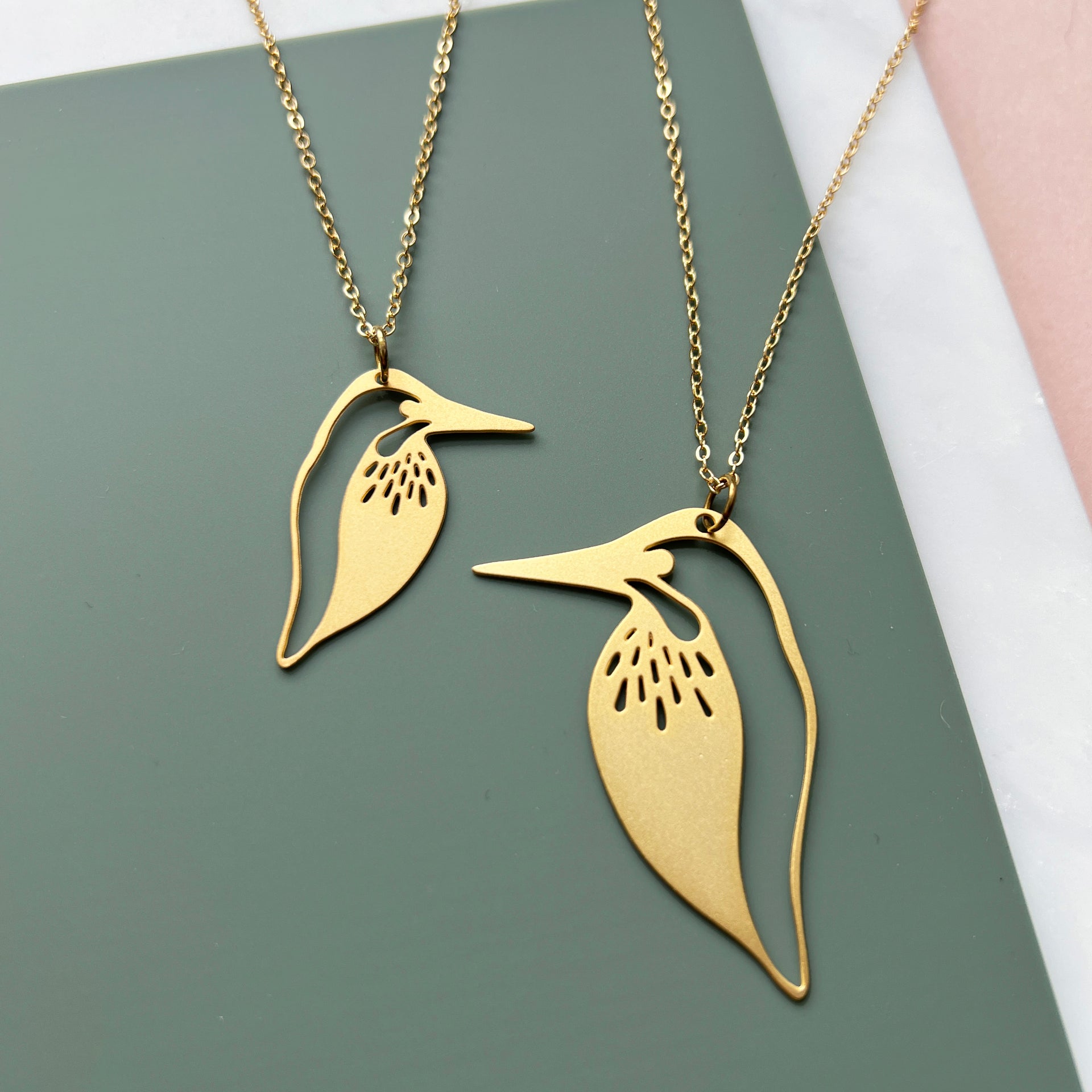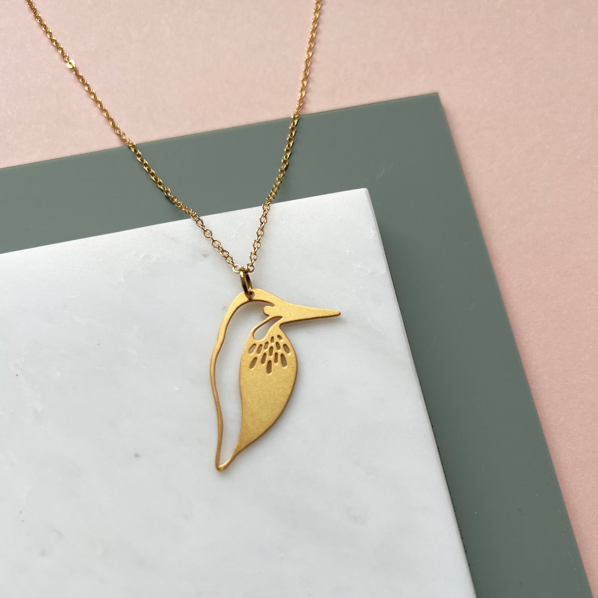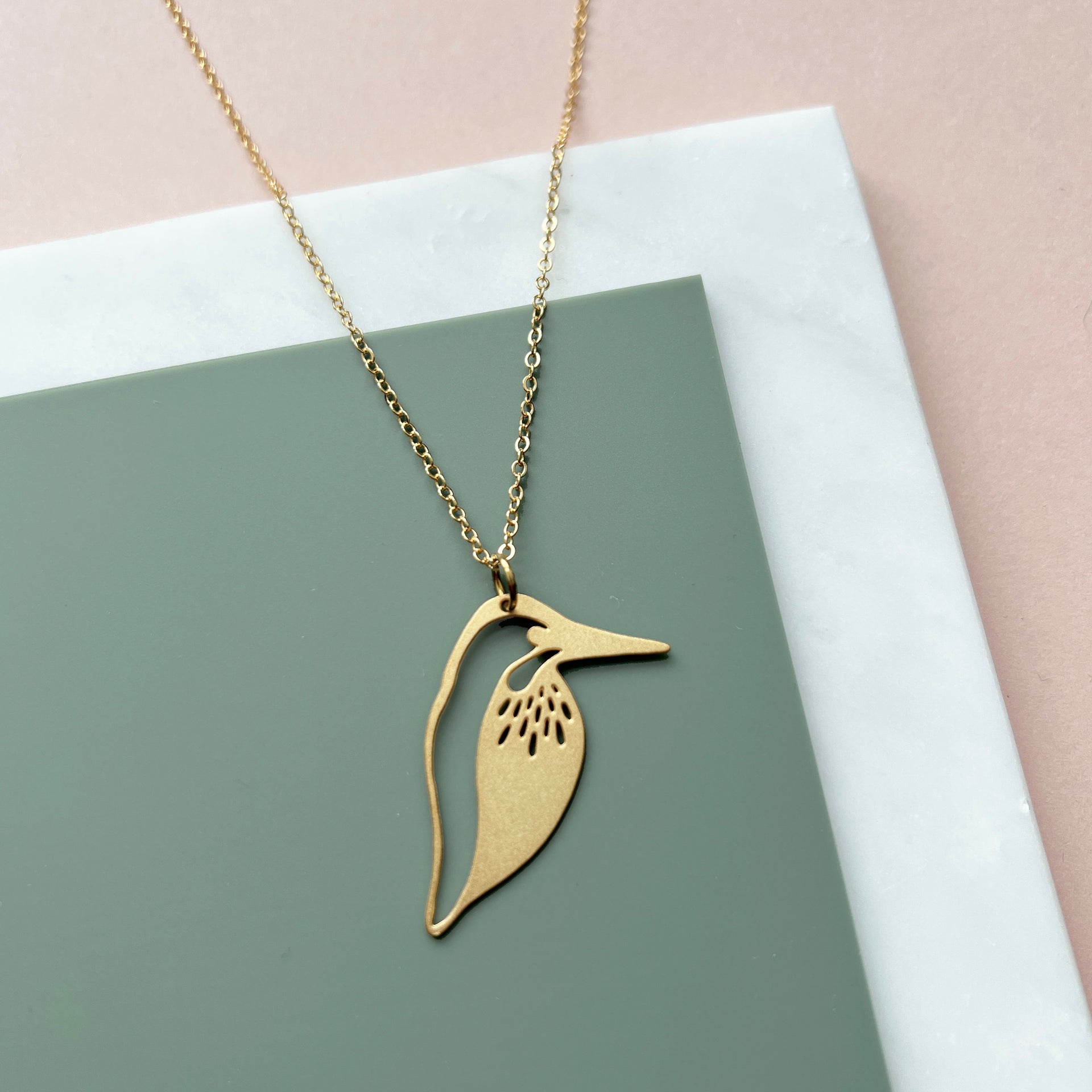 Kingfisher Bird Necklace - Gold Bird Pendant