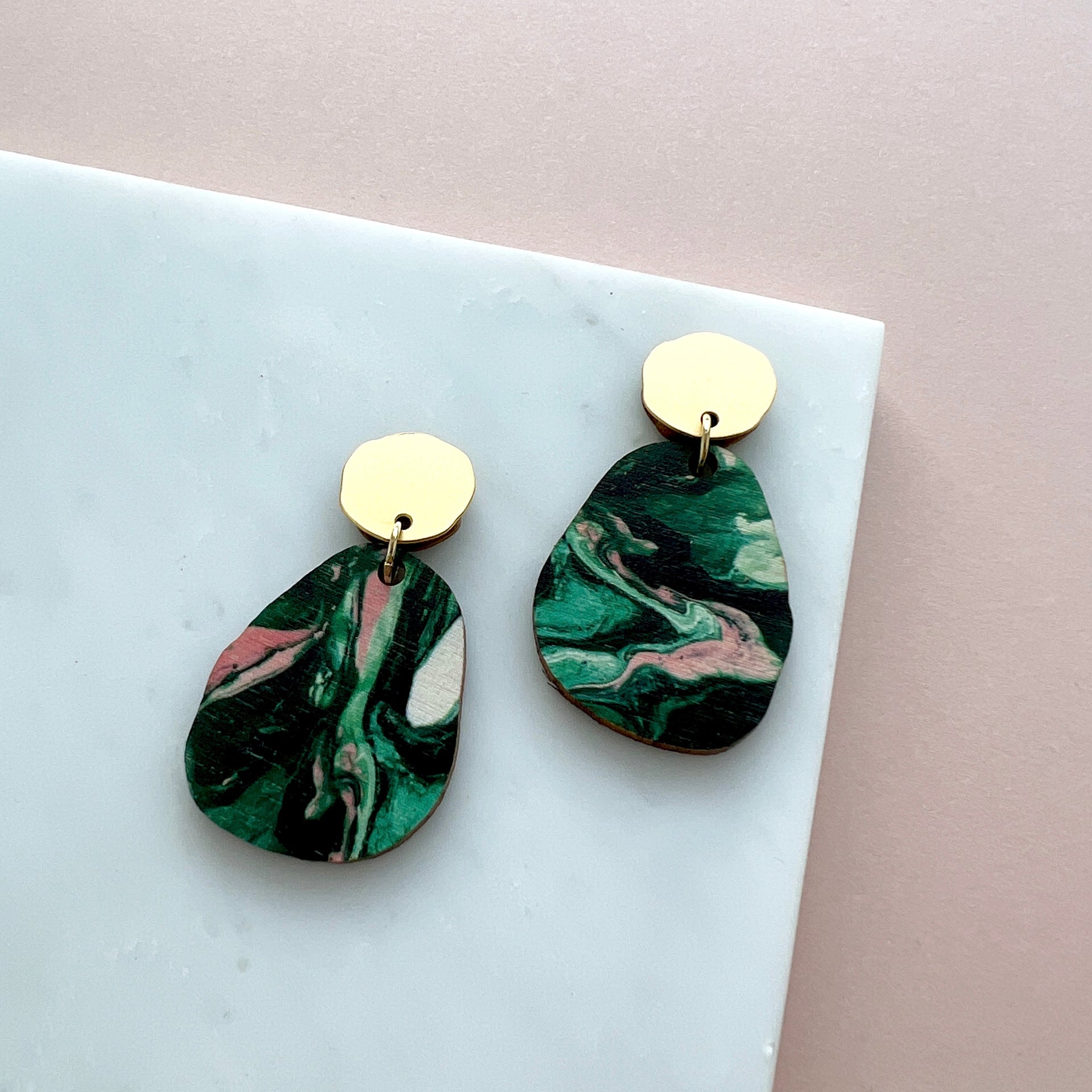 These statement drop earrings measure 5cm long the piece that sits on the ear measures 1.5cm