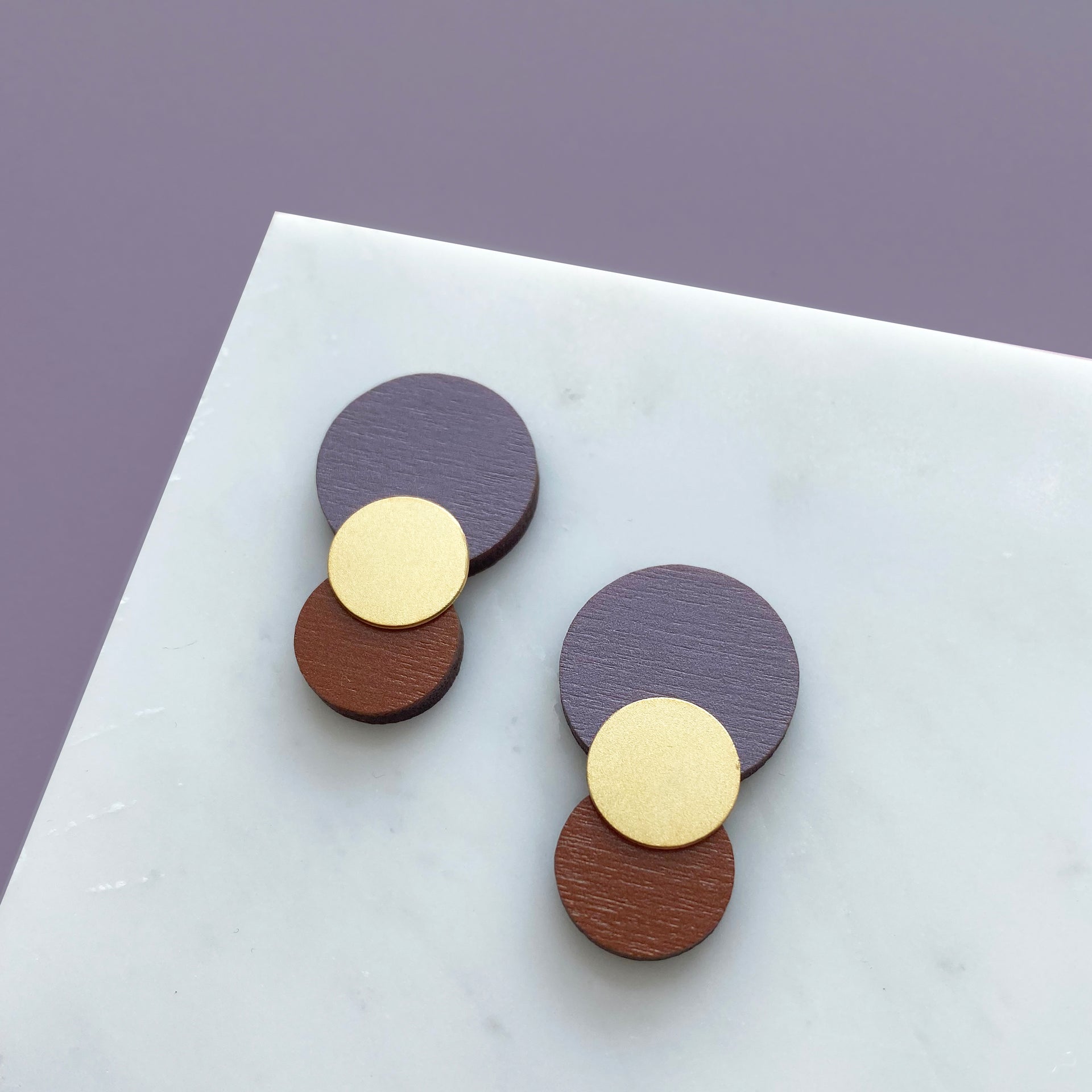 All my jewellery is made from high quality digitally printed FSC certified 3mm plywood, which is cut using a laser cutter and painted black on the reverse