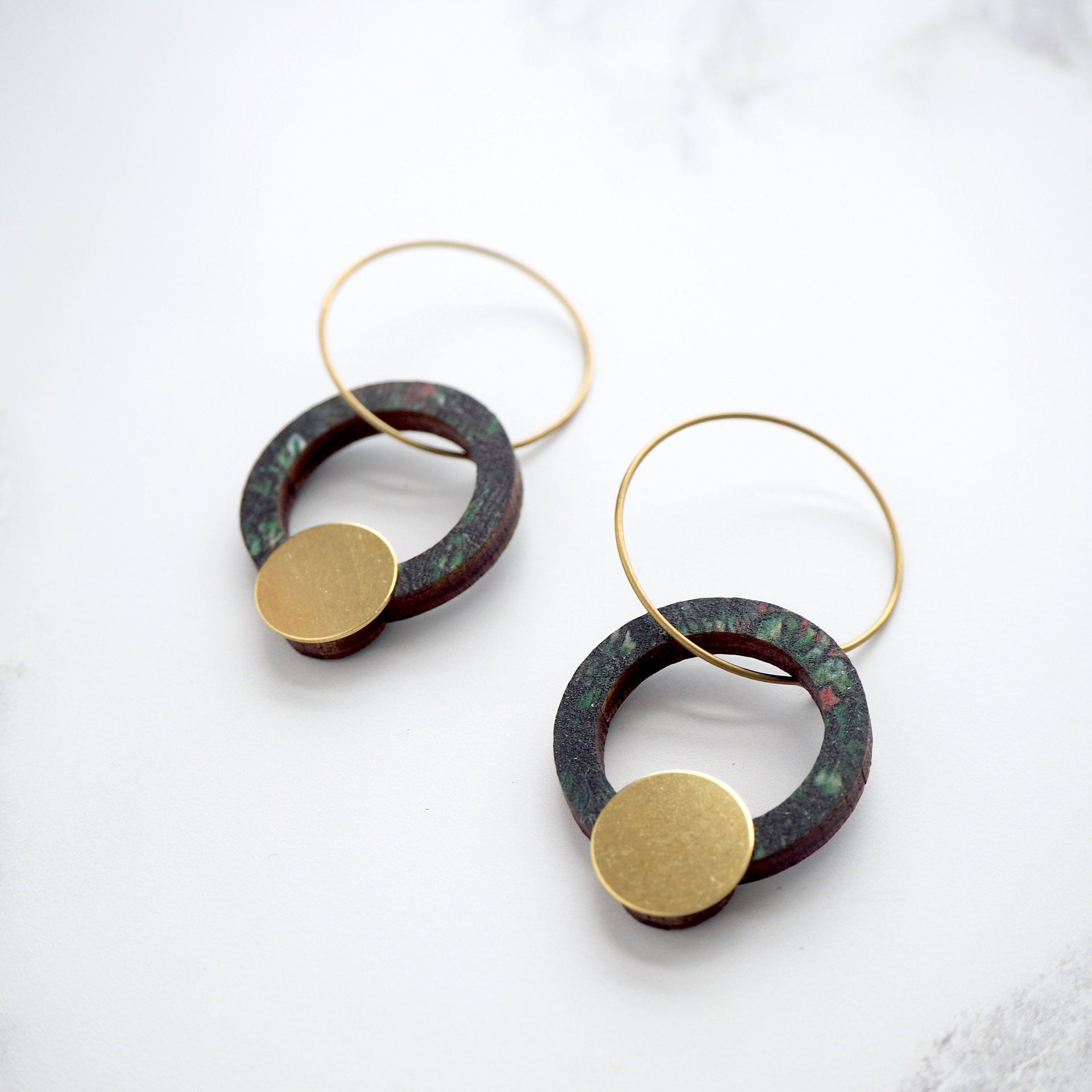 Green & brass minimal ring hoop earrings, perfect for everyday wear