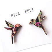 A stunning pair of hummingbird earrings, featuring tones of pink, purple & mint