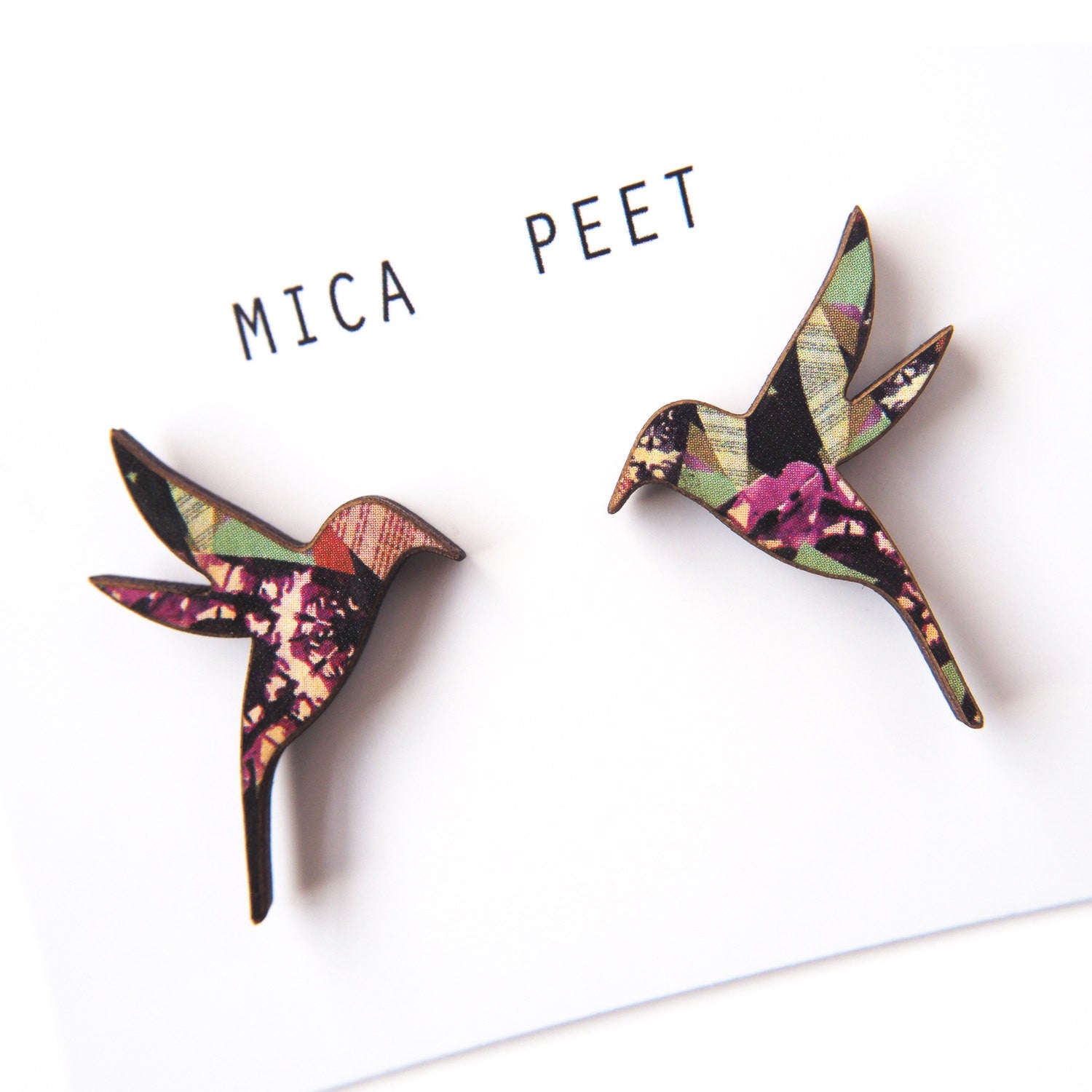 All my jewellery is made from high quality digitally printed FSC certified 3mm plywood, which is cut using a laser cutter and painted black on the reverse