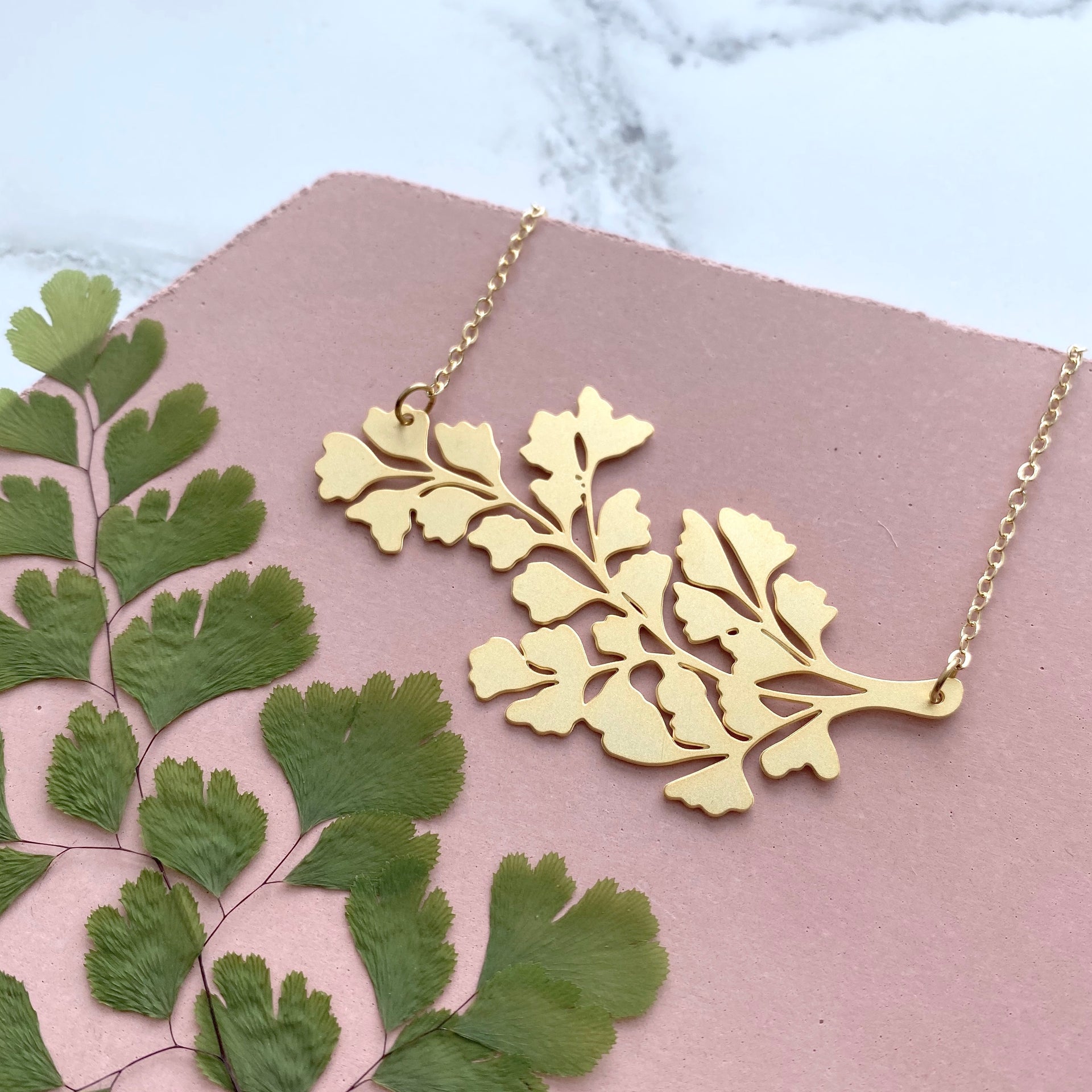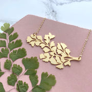 Can't keep a real maidenhair fern alive in your house plant collection? Then this gold inspired fern necklace is for you.