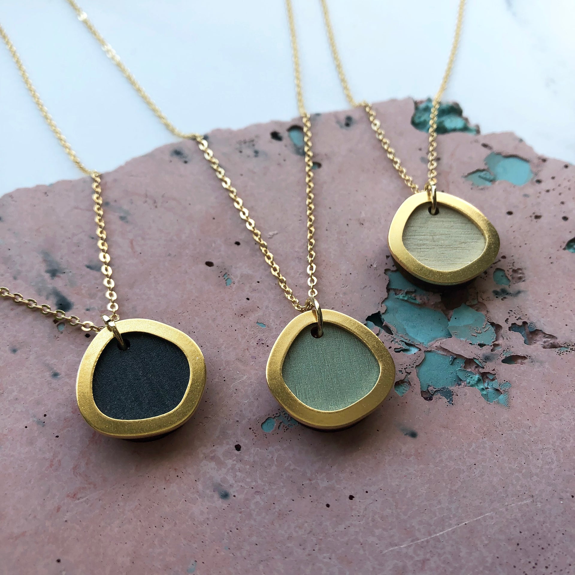 Minimal mint & gold plated circle necklace, perfect for mix and matching with our more statement patterned pieces