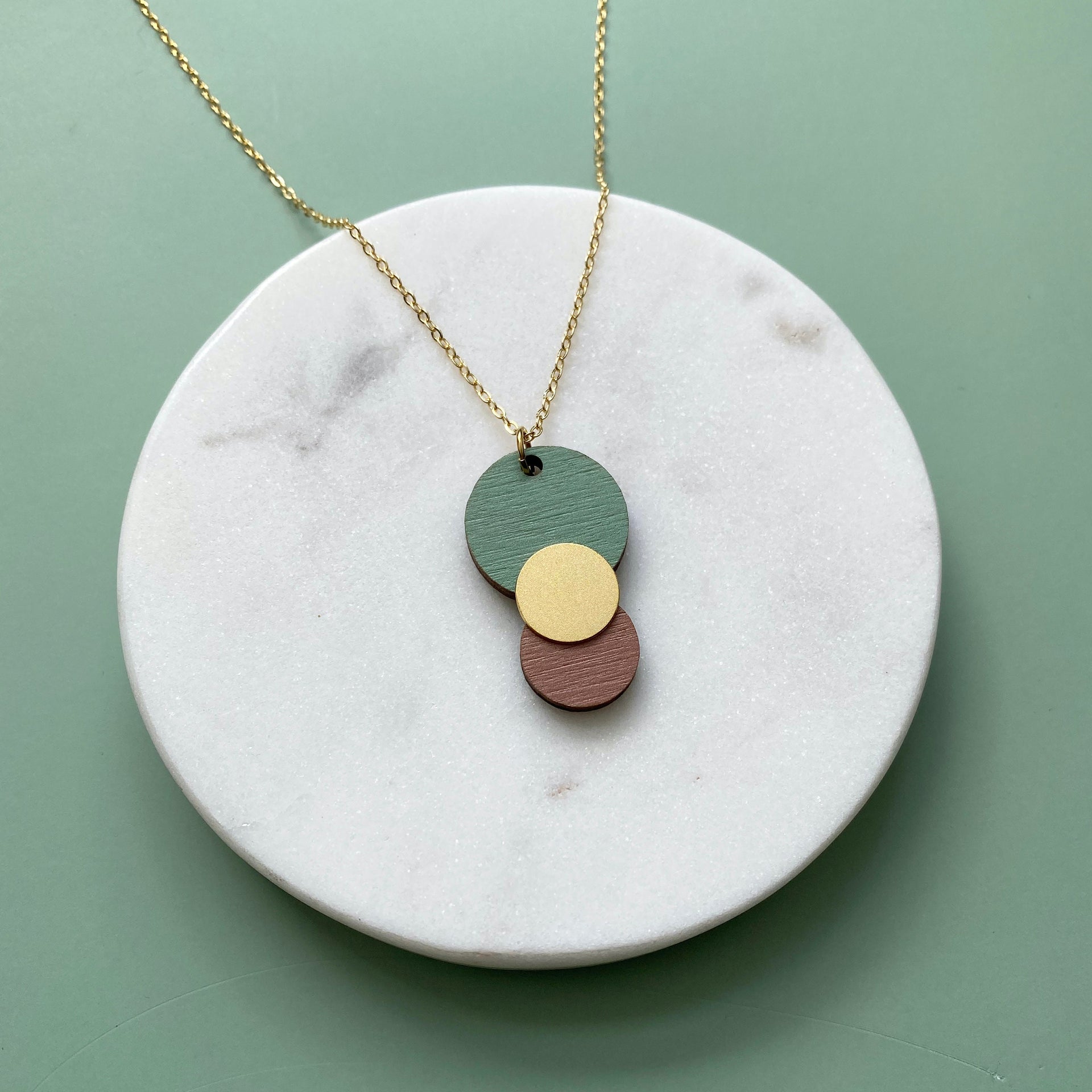A beautiful mint & pink circle necklace, with a gold plated circle detail
