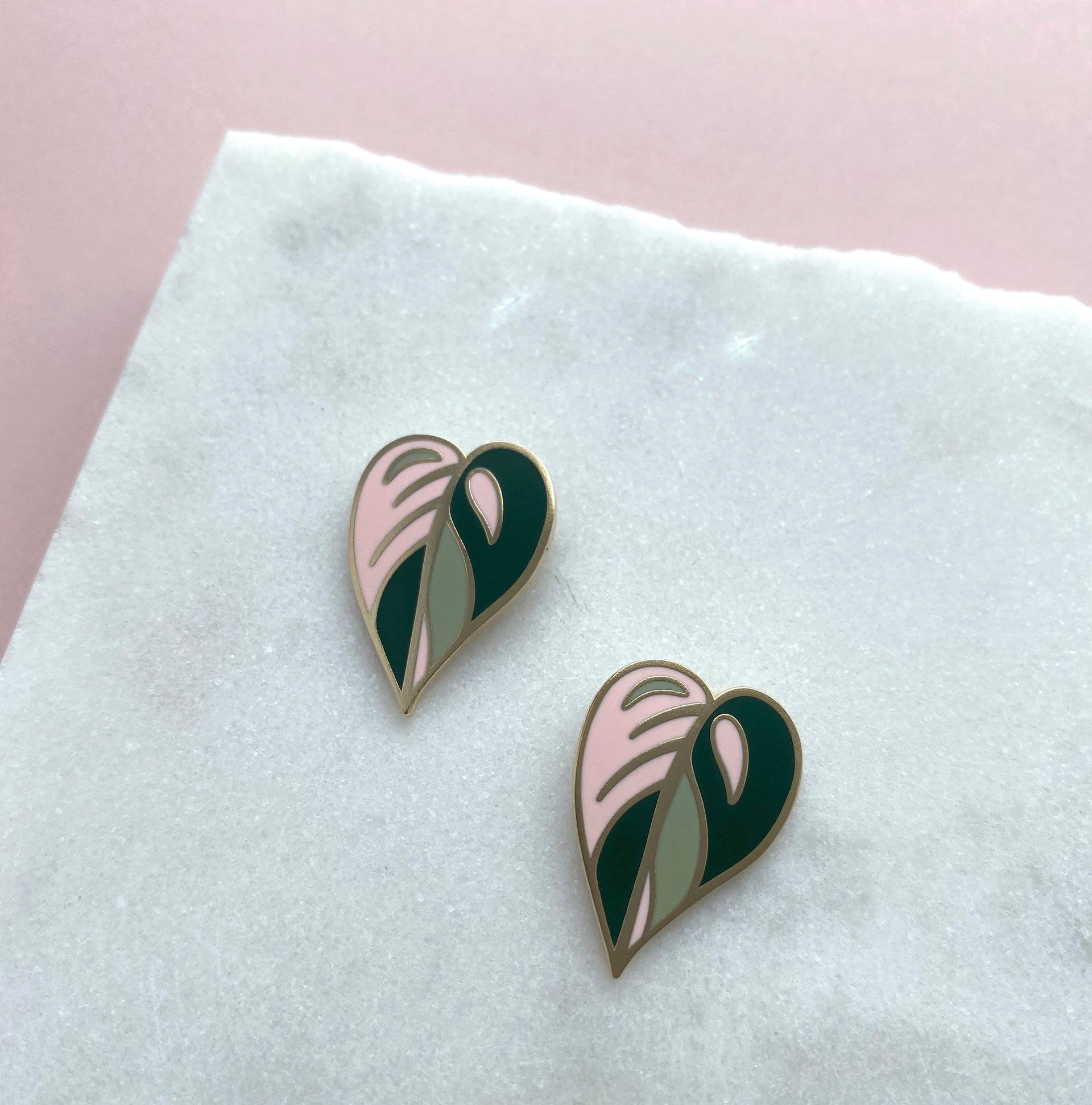 Pink Leaf Enamel Earrings