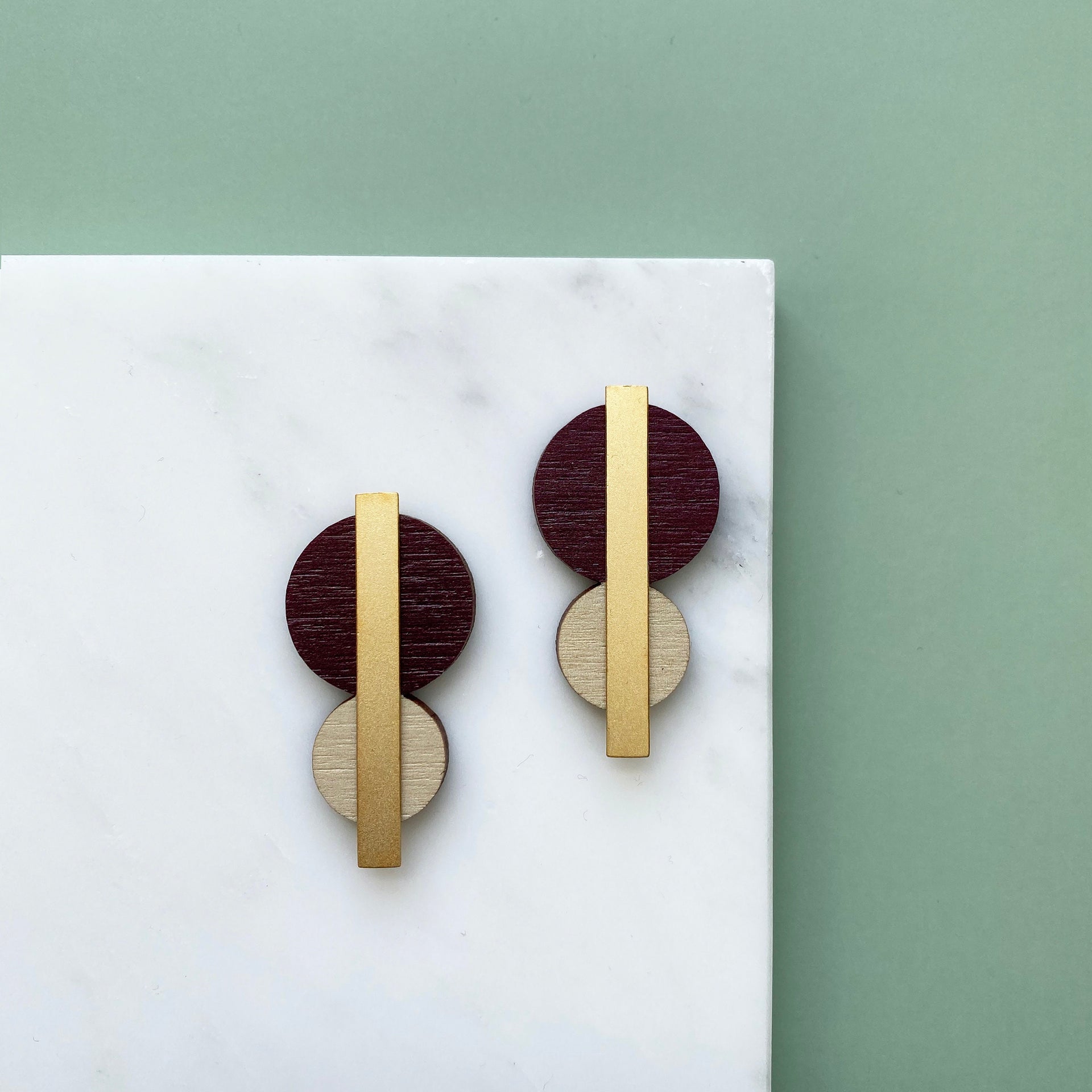 All my jewellery is made from high quality digitally printed FSC certified 3mm plywood, which is cut using a laser cutter and painted black on the reverse