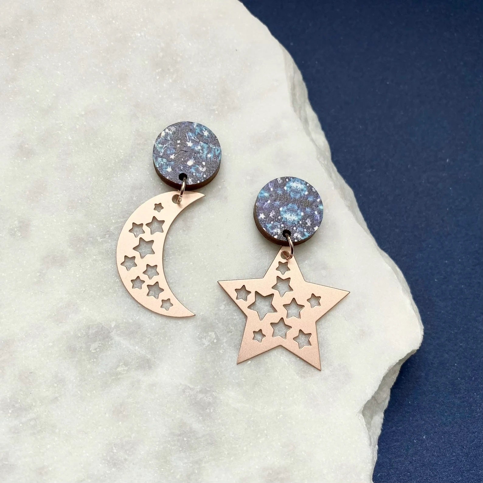 This is a mix and match set, You will receive 1 Moon & 1 Star earring