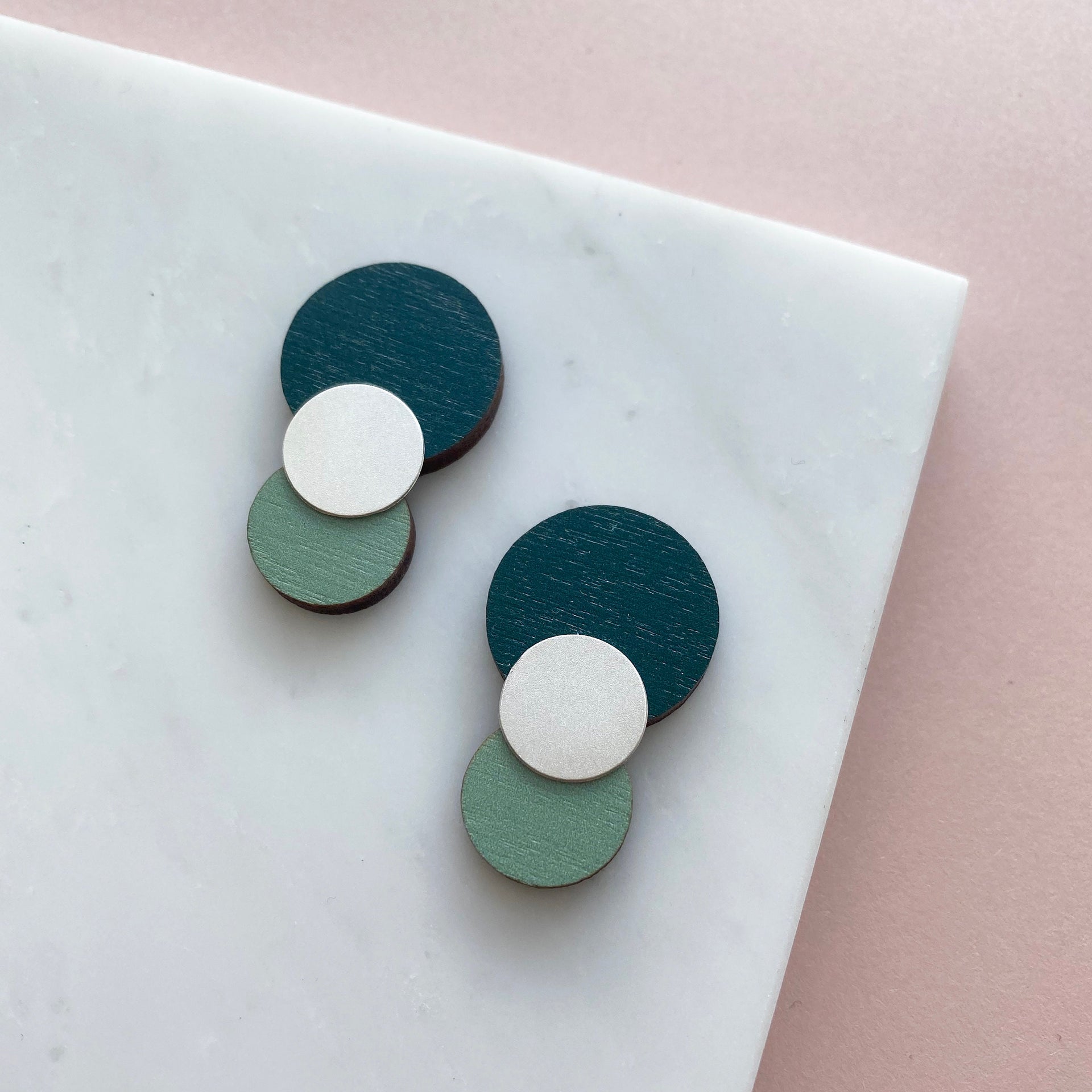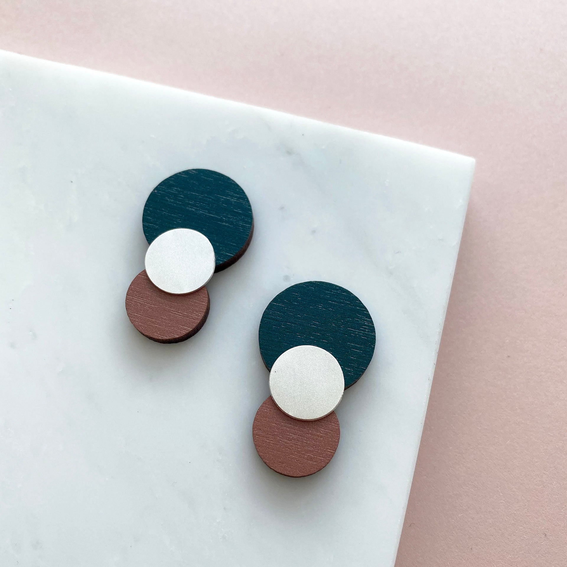 Simple yet striking colour combo and silver circle stud earrings, available in 4 different colour variations