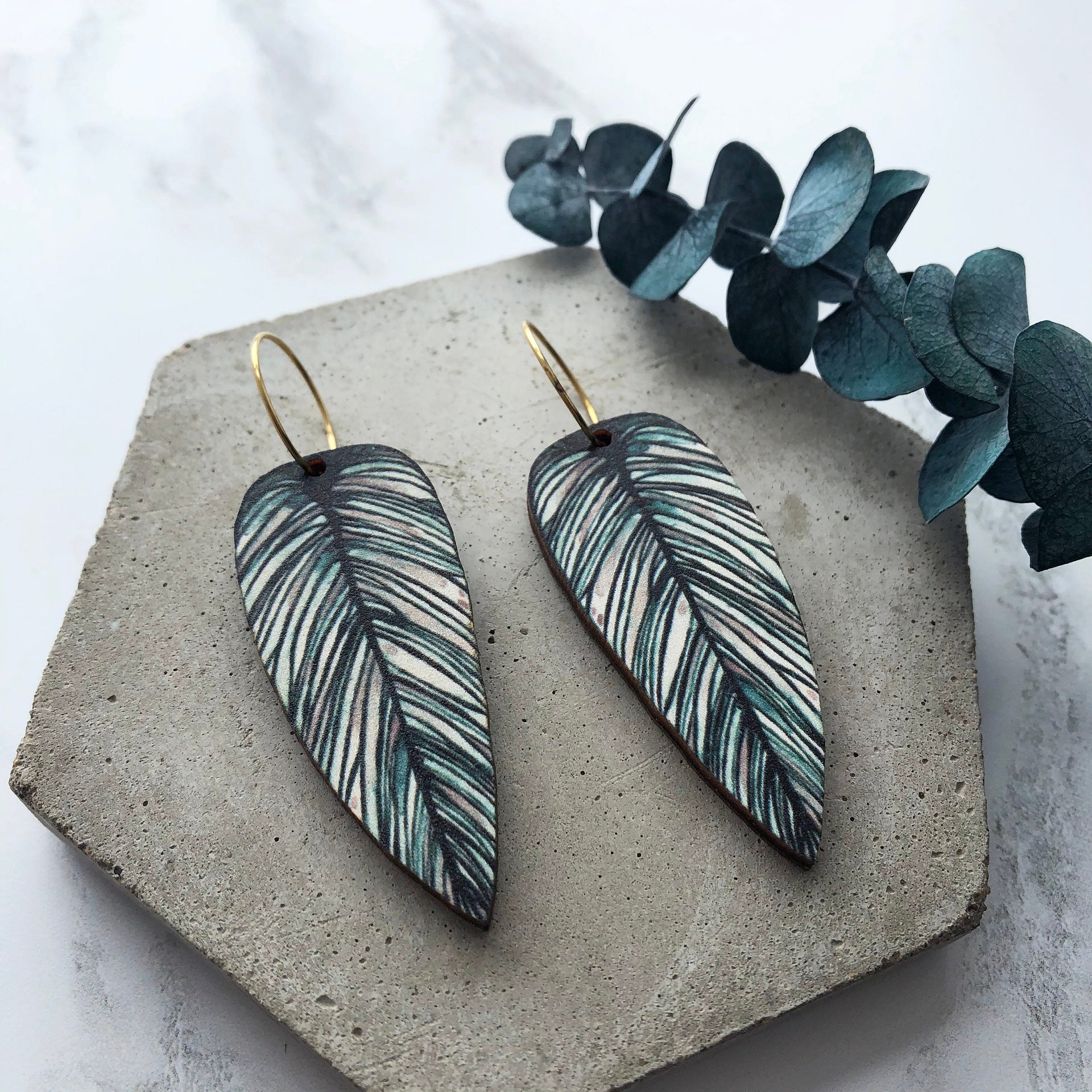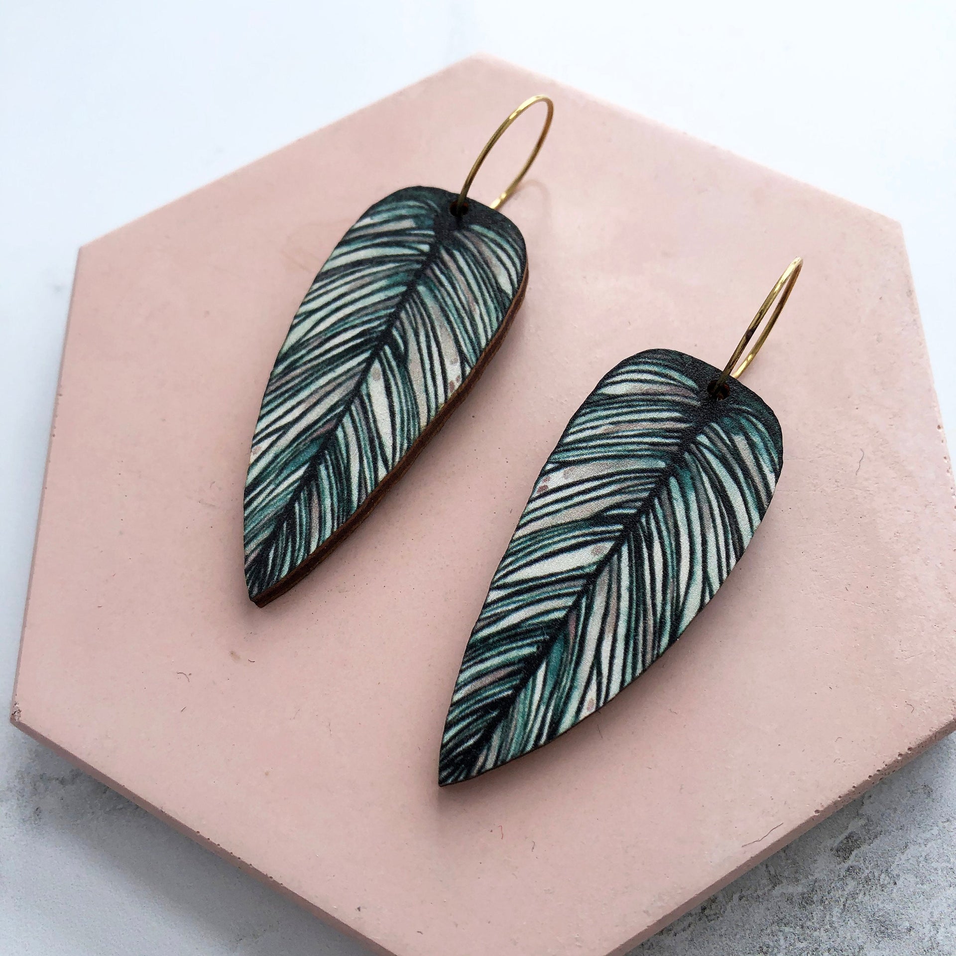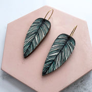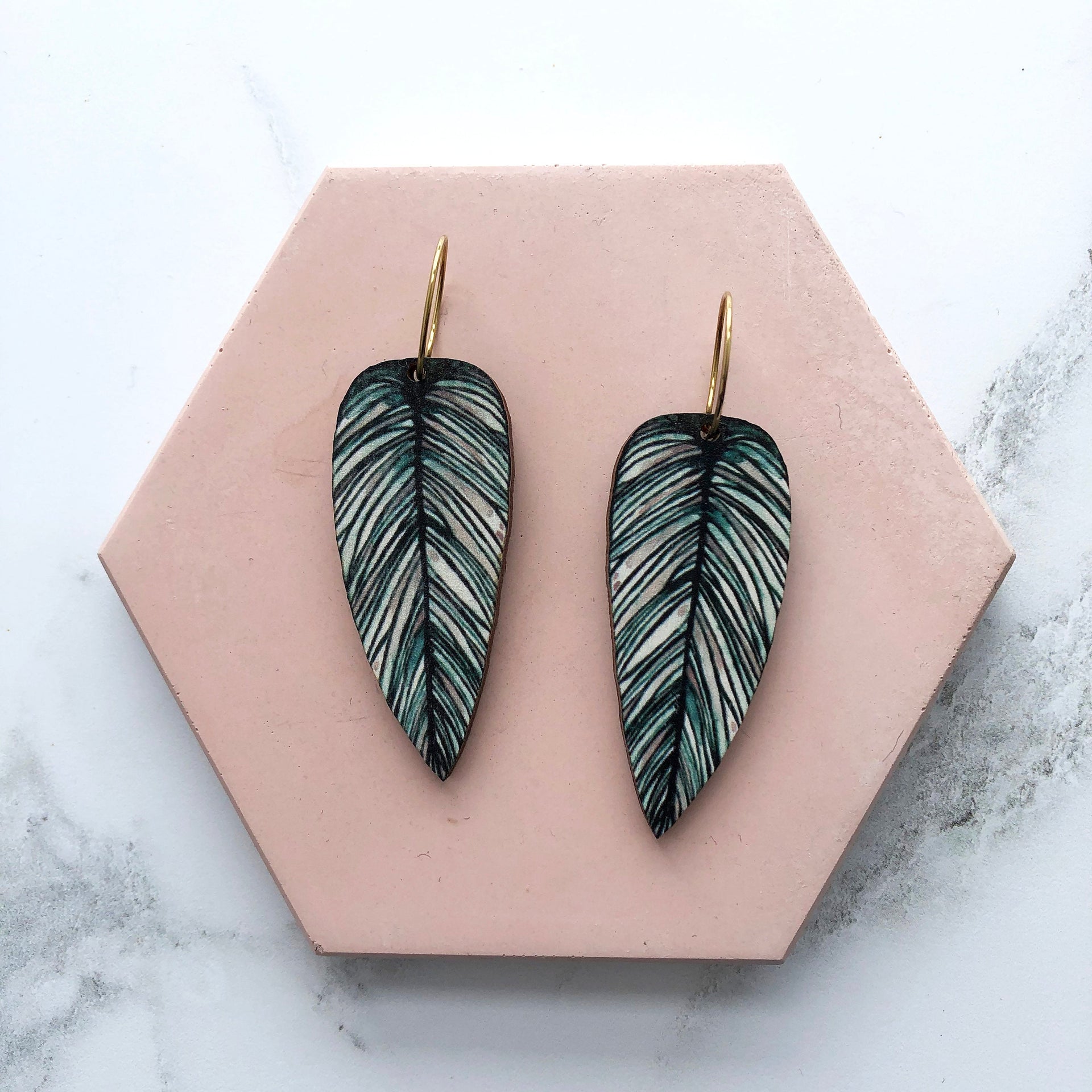 Pretty tropical leaf hoop earrings, inspired by the Calathea Whitesar houseplant