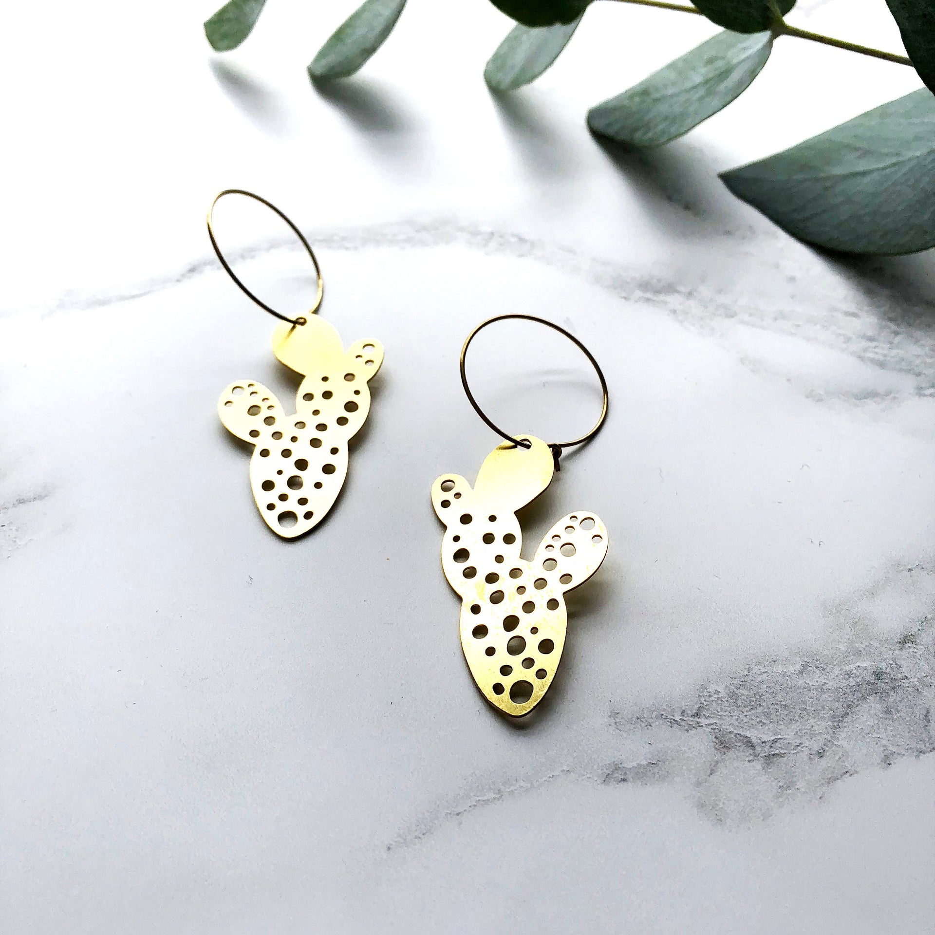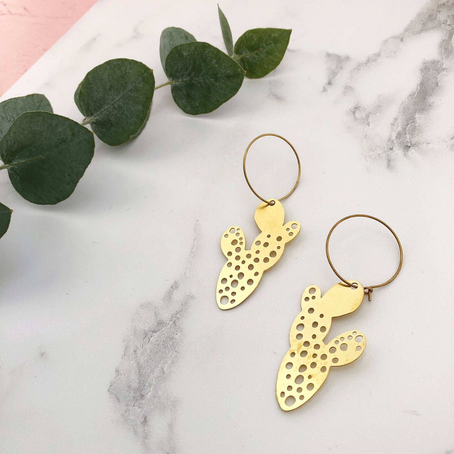 Minimal gold cactus hoop earrings, a unique and fun fashion accessory for house plant lovers