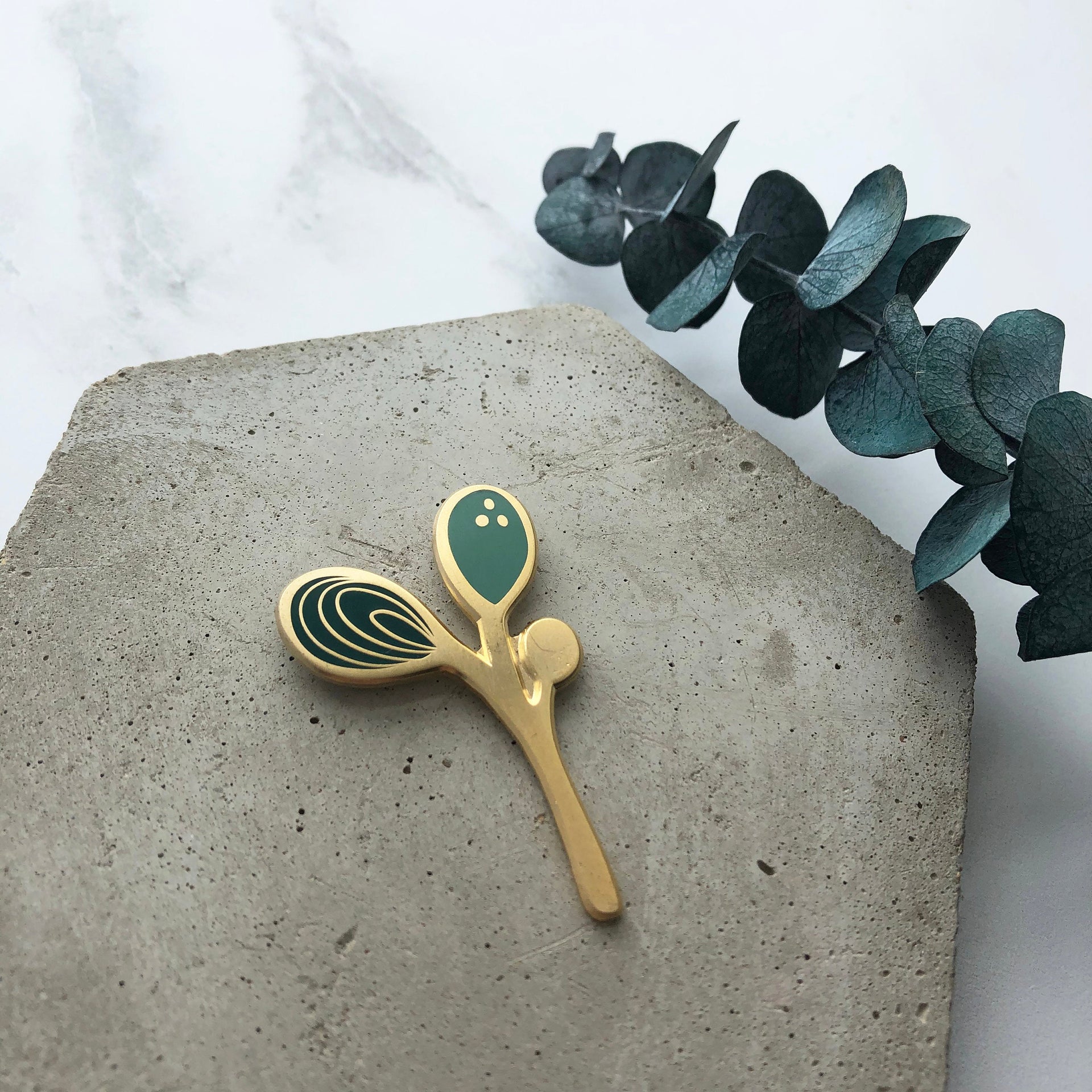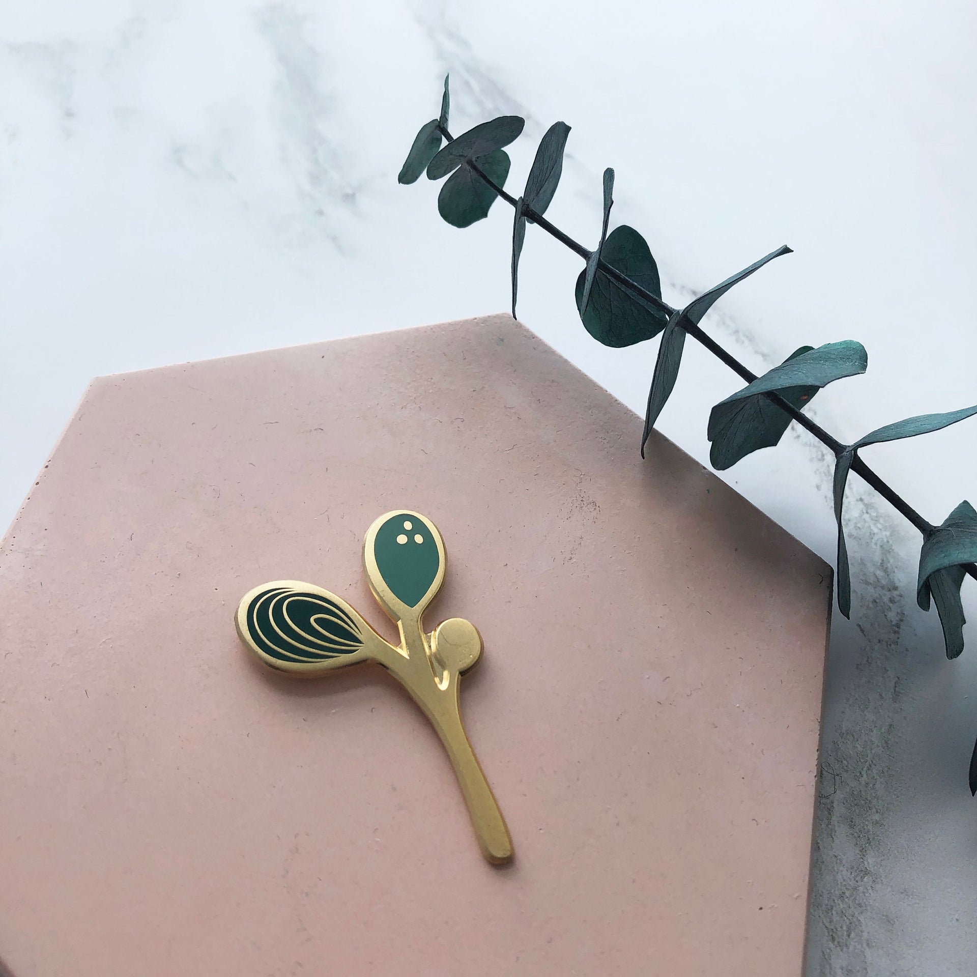 A beautiful and unique Eucalyptus branch enamel pin, the perfect gift for any plant lover