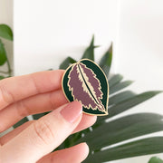 A unique leaf enamel pin, inspired by one of my favourite house plants, the Calathea Medallion