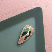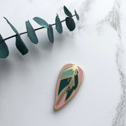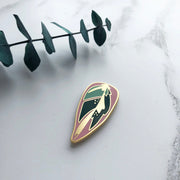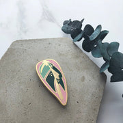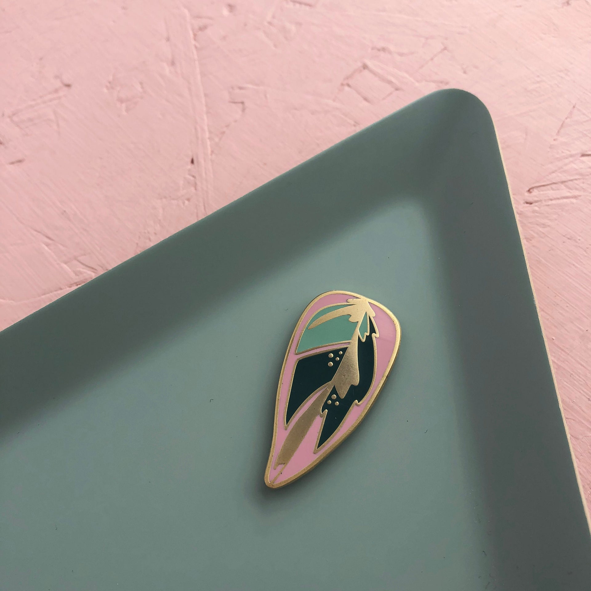 A pretty little pink leaf enamel pin, based on the houseplant, Calathea Stromanthe Triostar