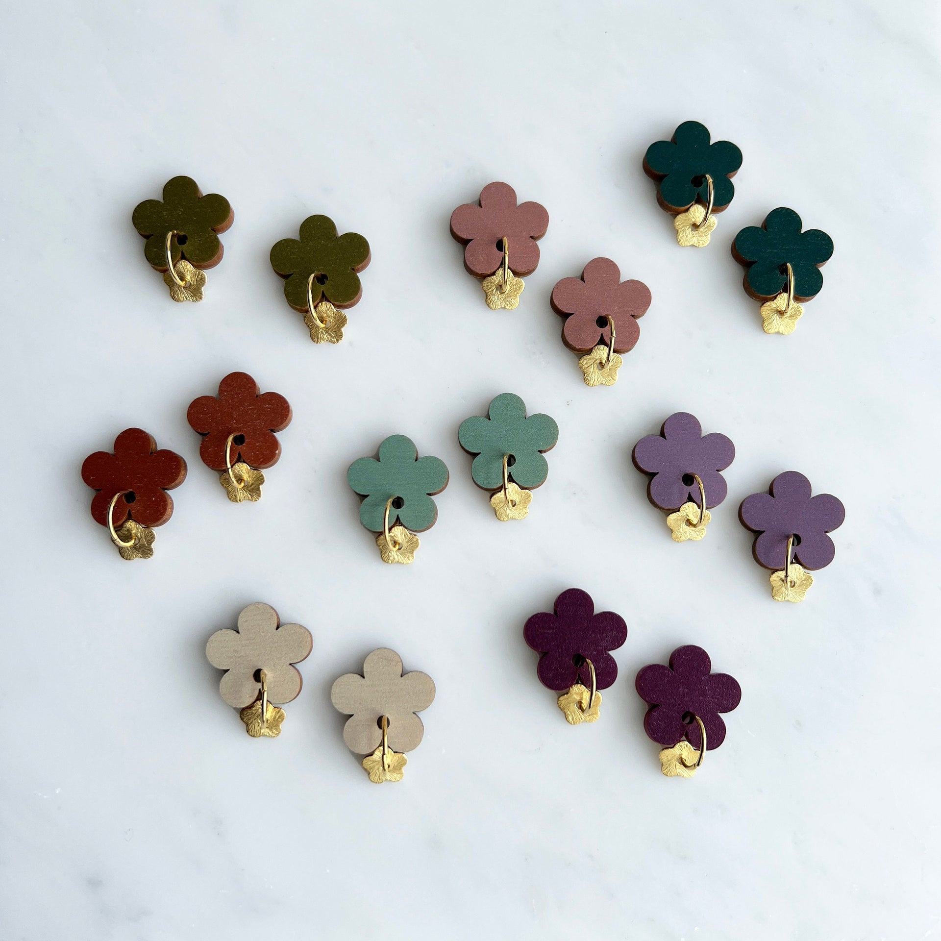 Colourful Flower Stud Earrings - Minimal Gold Flower Studs