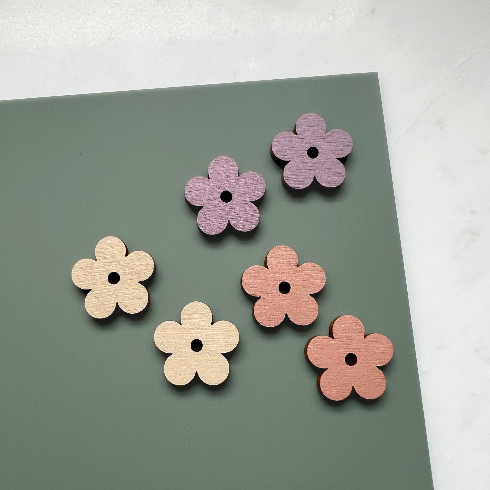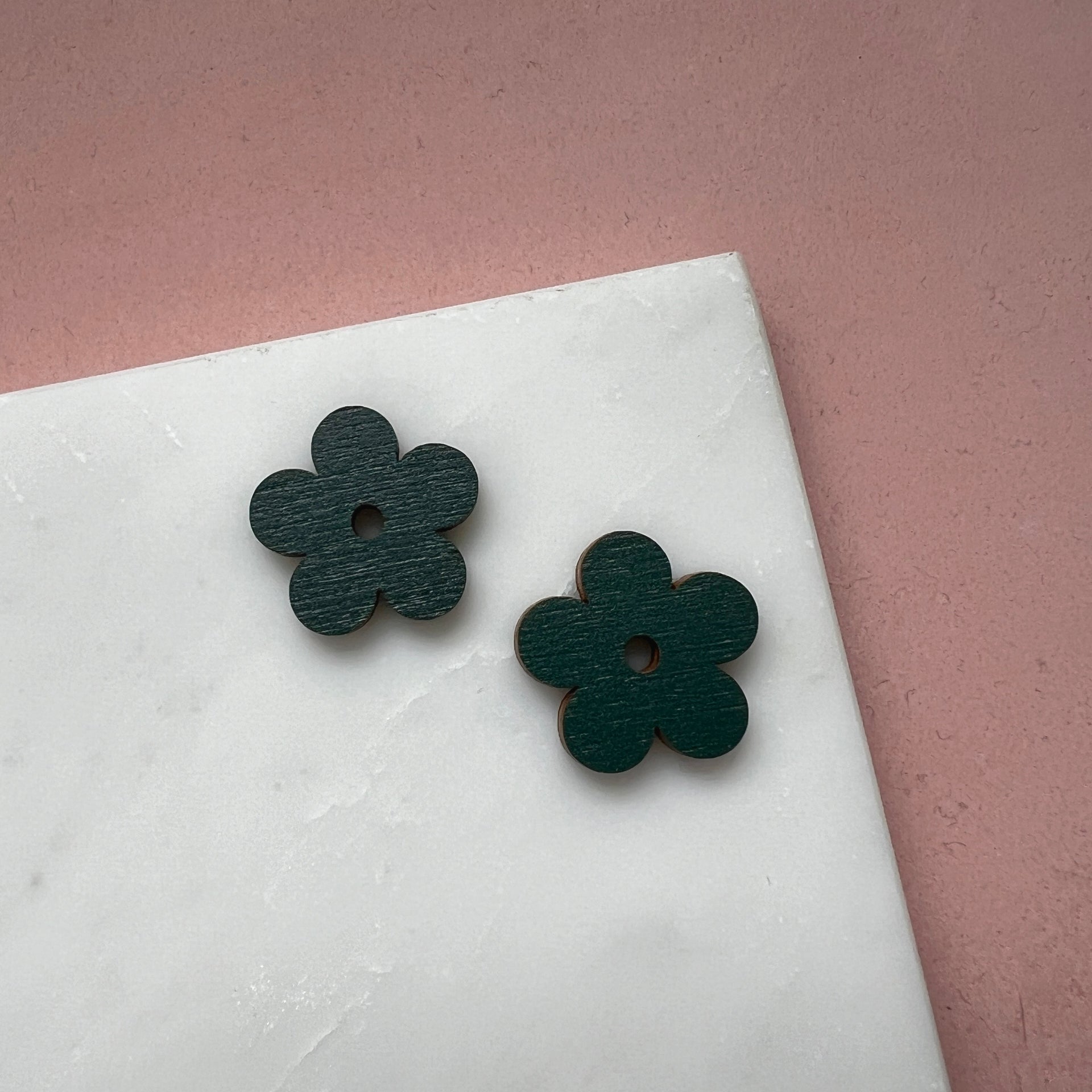 These simple floral studs come in mint, plant pink, olive, berry, lilac, orange, teal, cream and raspberry