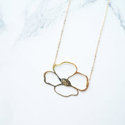 A beautiful laser cut gold plated anemone floral necklace, based upon my original flower illustration