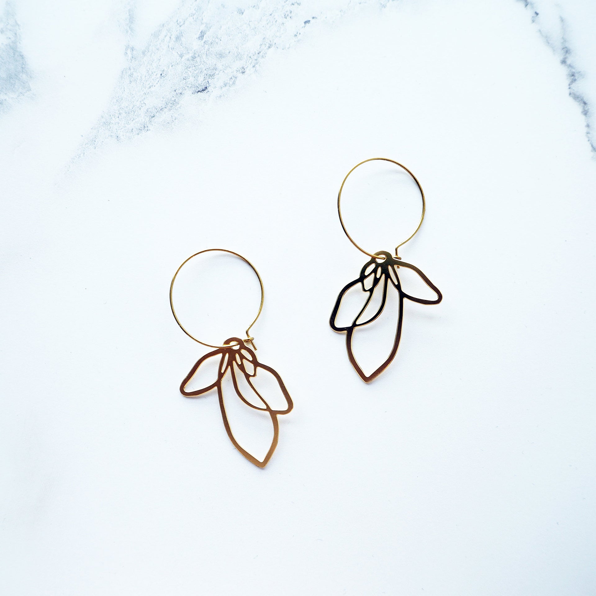 The leaf part is made from laser cut nickel free brass plated with a lovely matt gold finish