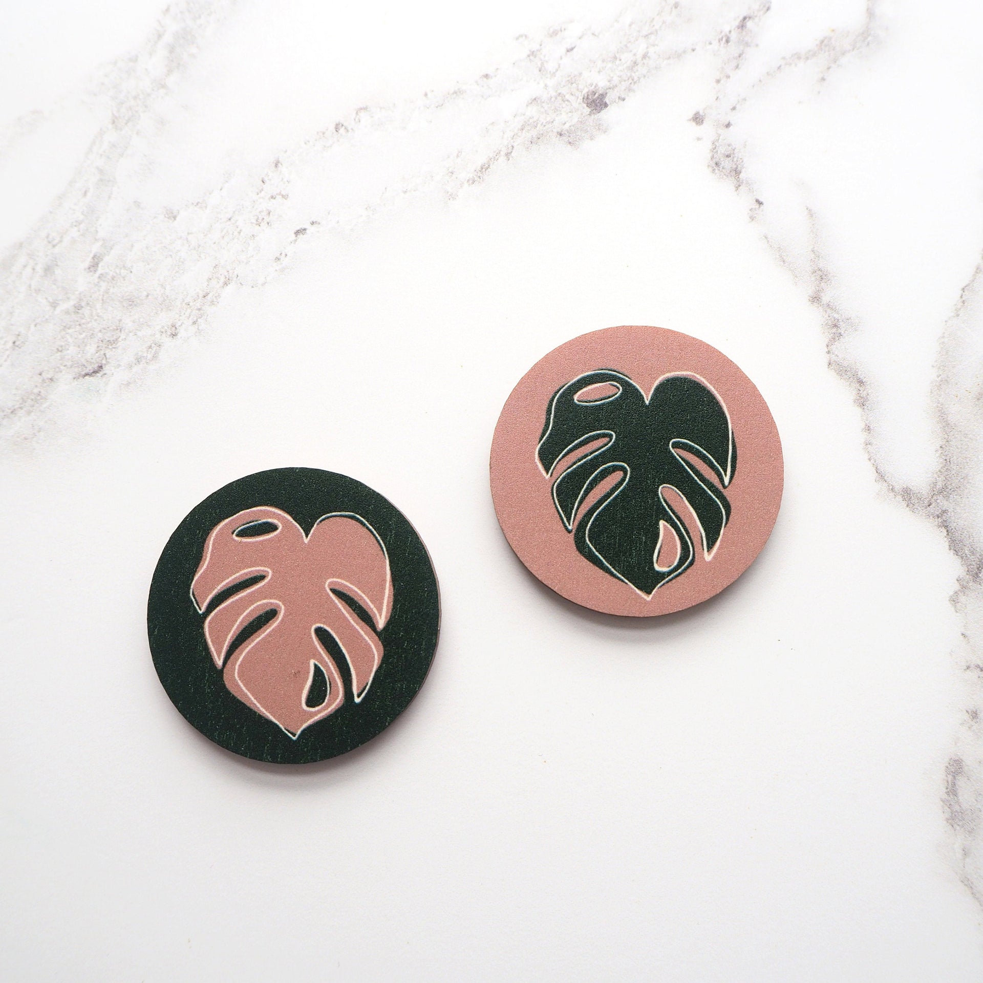 All my jewellery is made from high quality digitally printed FSC certified 3mm plywood, which is cut using a laser cutter and painted black on the reverse