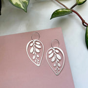Silver Leaf Hoop Earrings - Calathea Makoyana Earrings