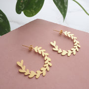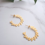 Gold Branch Leaf Hoop Studs