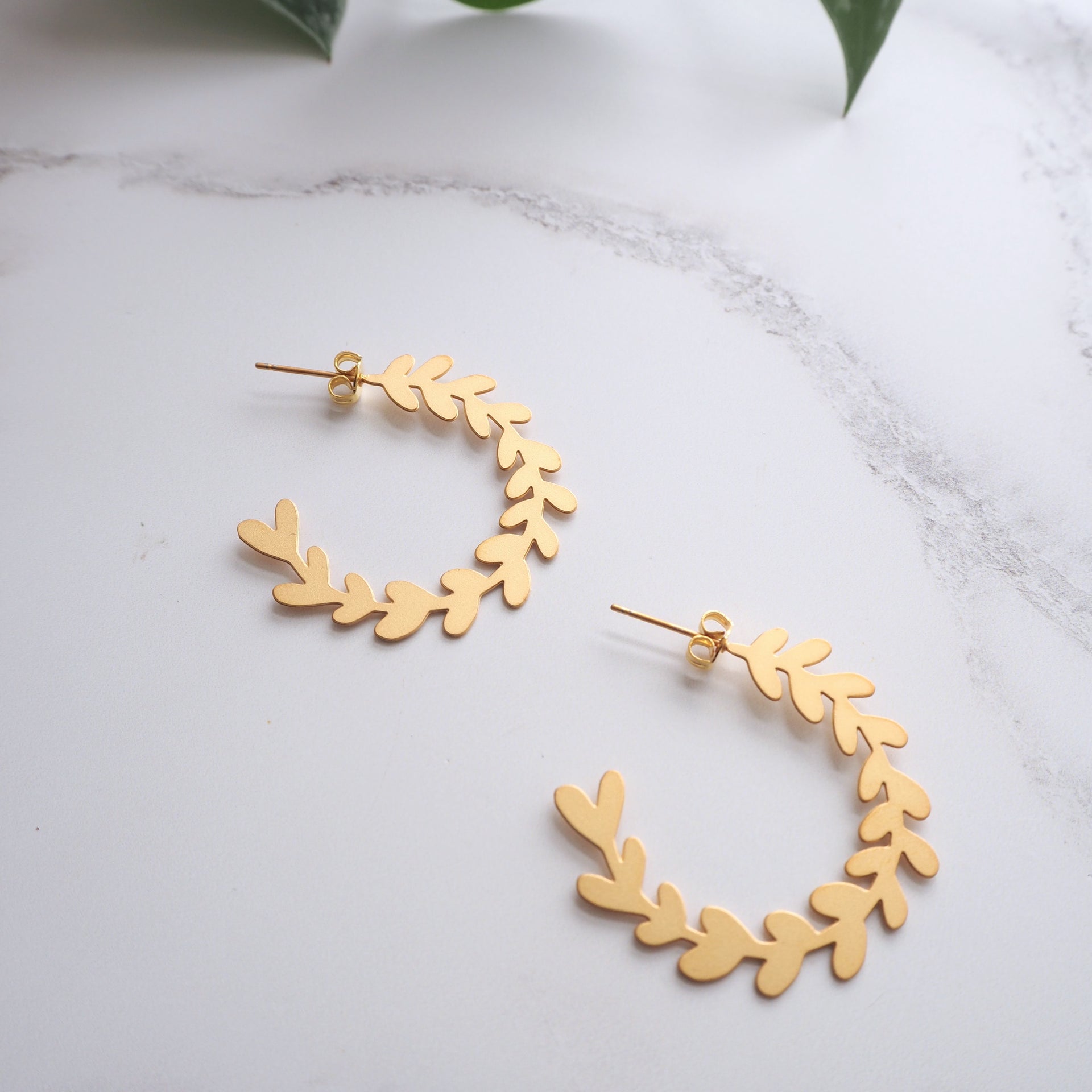 The leaf part is made from laser cut nickel free brass plated with a lovely matt gold finish with gold plated earrings posts which are nickel free and hypoallergenic