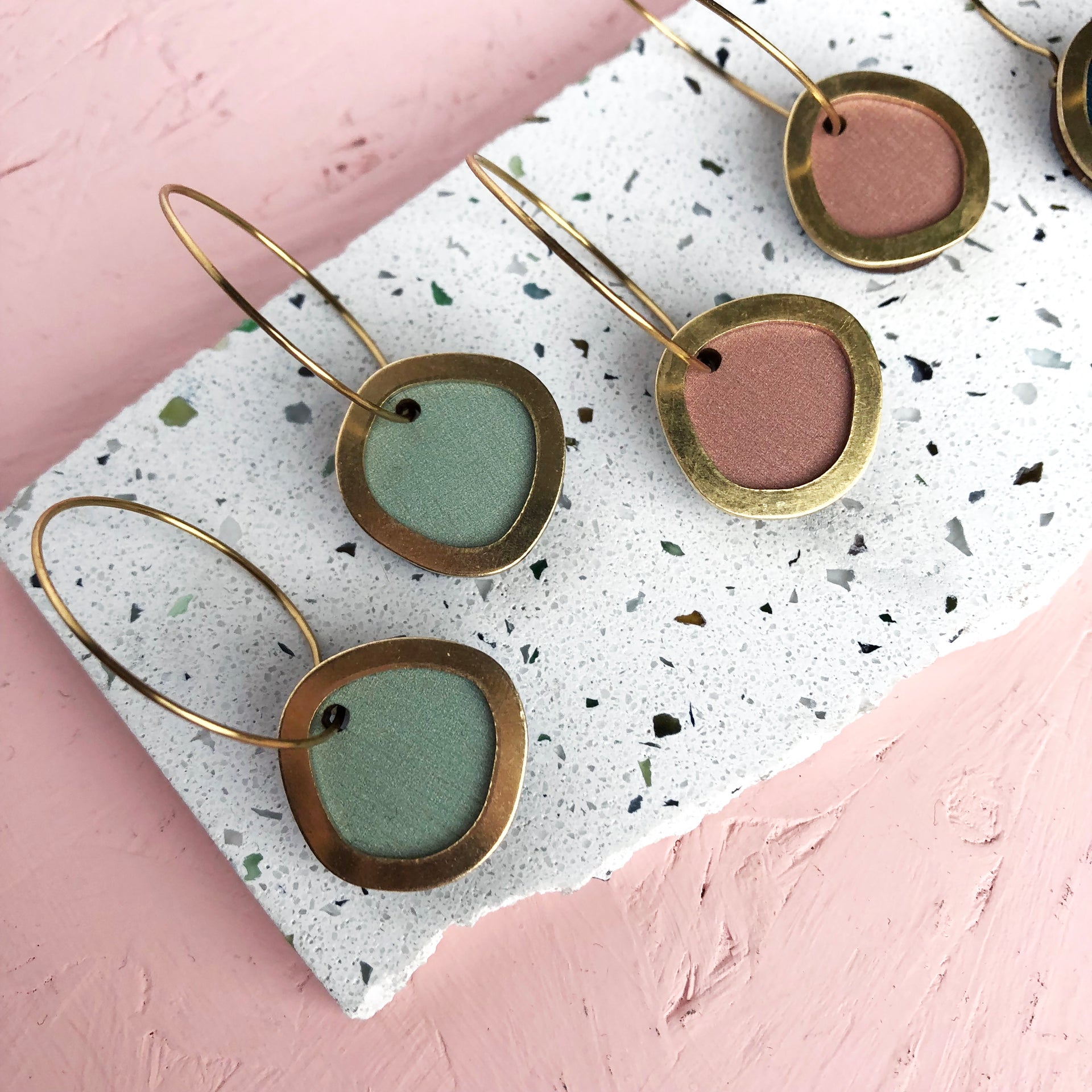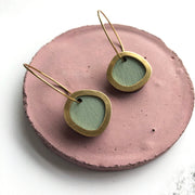 A stunning & minimal pair of mint & brass minimal circle hoop earrings