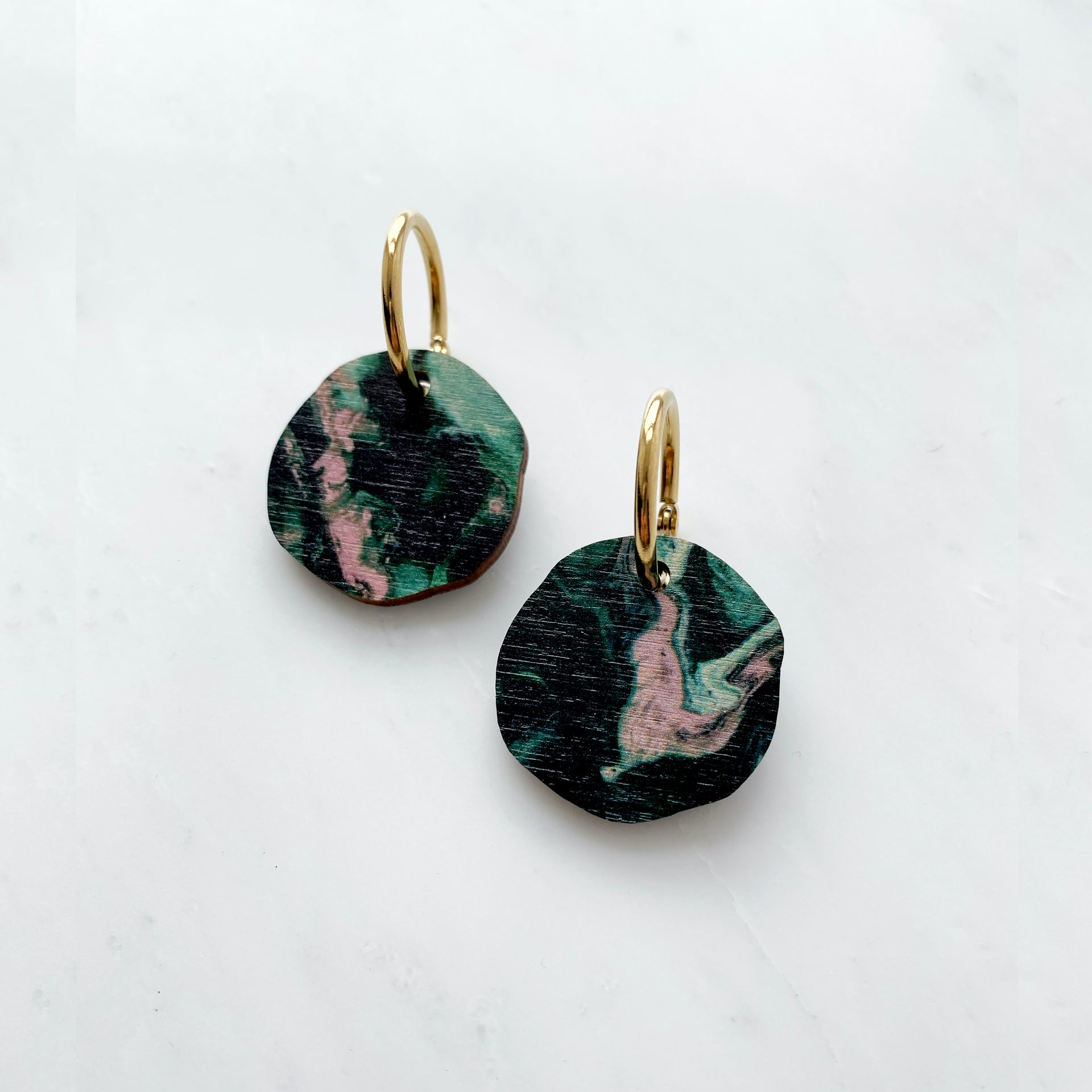 Disc Hoop Earrings - Pink & Green Marble Hoops