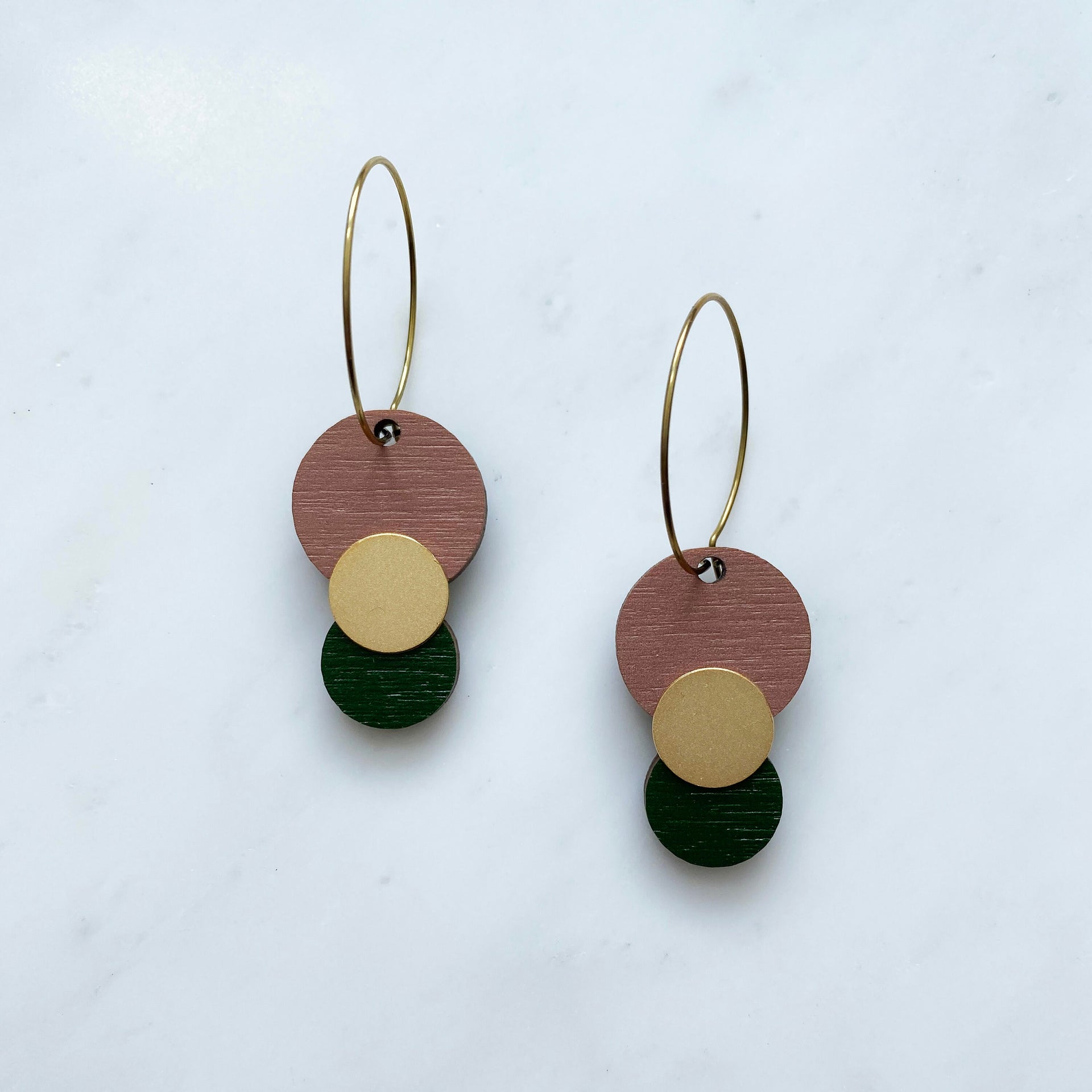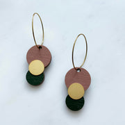 Pink, green & gold minimal circle hoop earrings, perfect for spring/summer