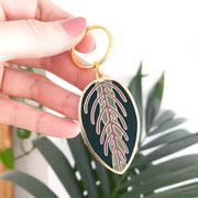 A beautiful matte gold plated and enamel maranta leaf keychain