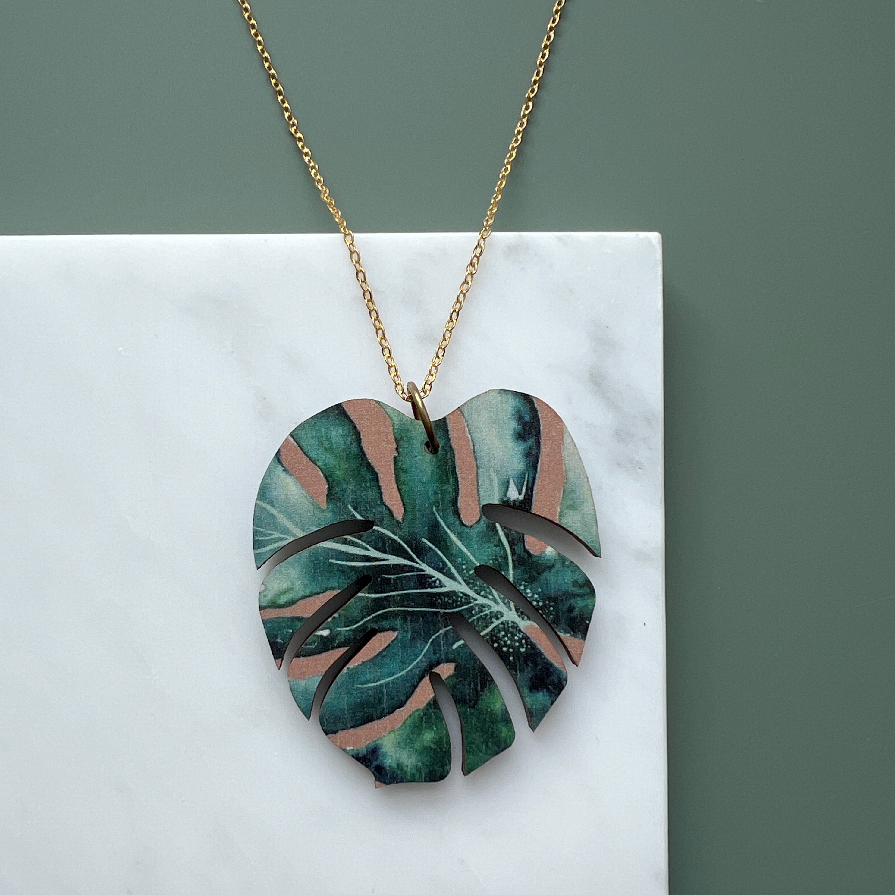 A lovely monstera leaf necklace