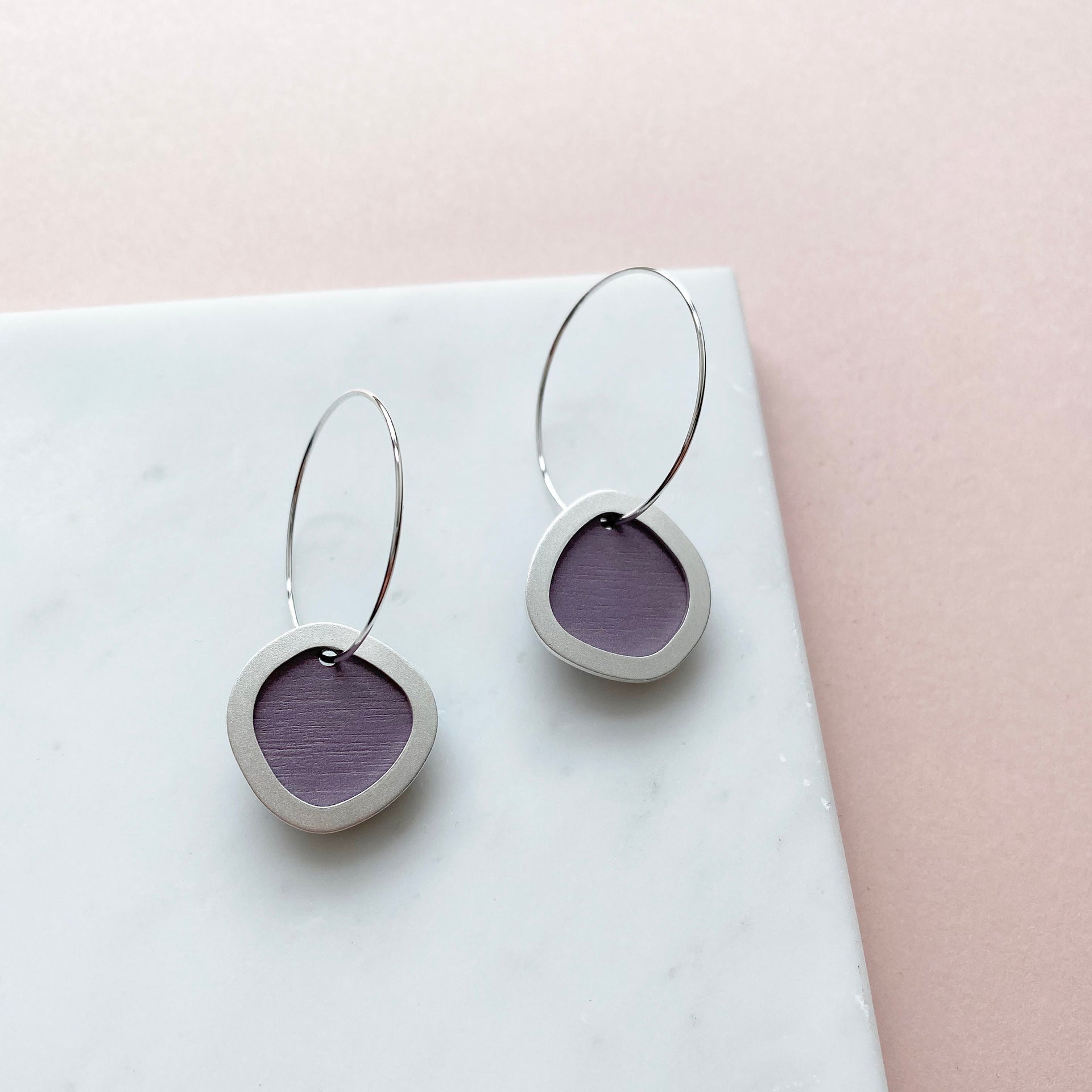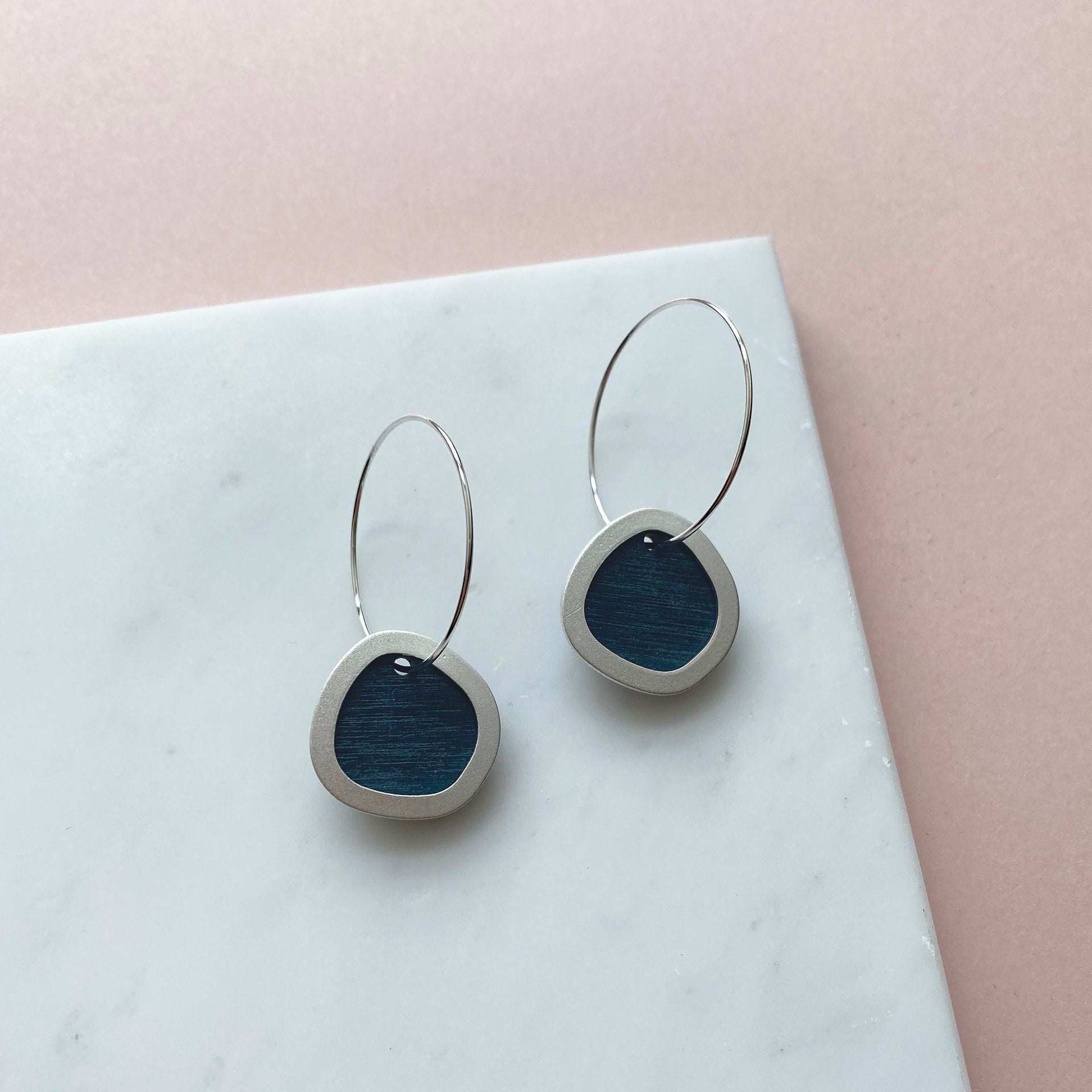 My best selling simple geometric circle hoop earrings are now available in a silver plated colour way and come in Mint, Lilac, Pink, Berry & Petrol Blue