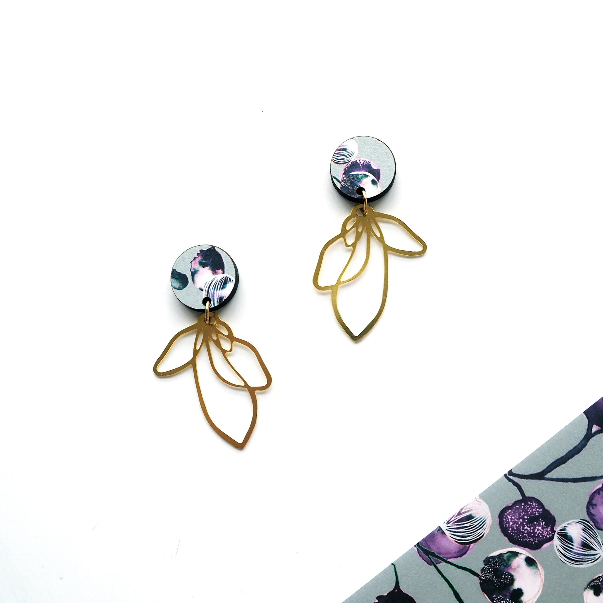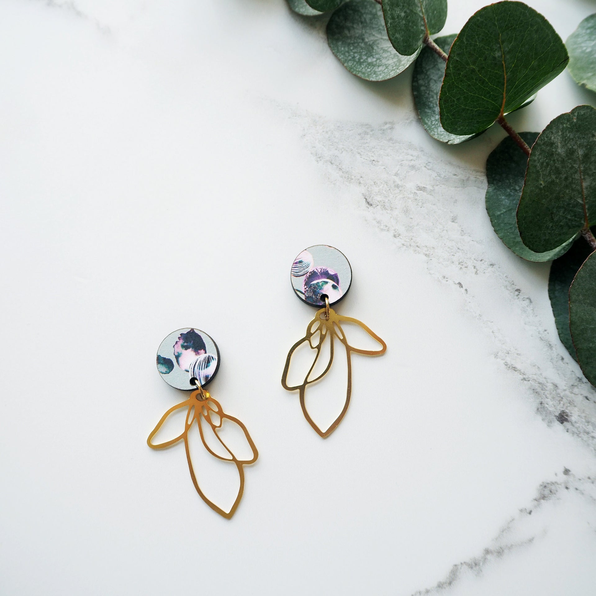 These lightweight botanical earrings measure 5cm and the circle measures 1.5cm