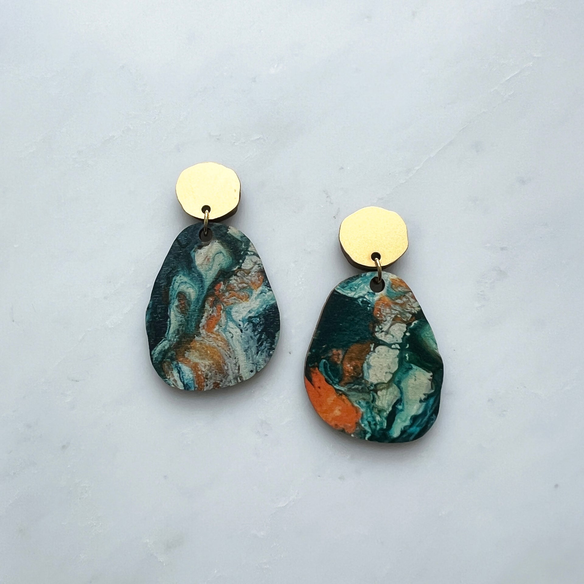 Statement Pebble Dangle Studs - Blue & Orange Drop Earrings