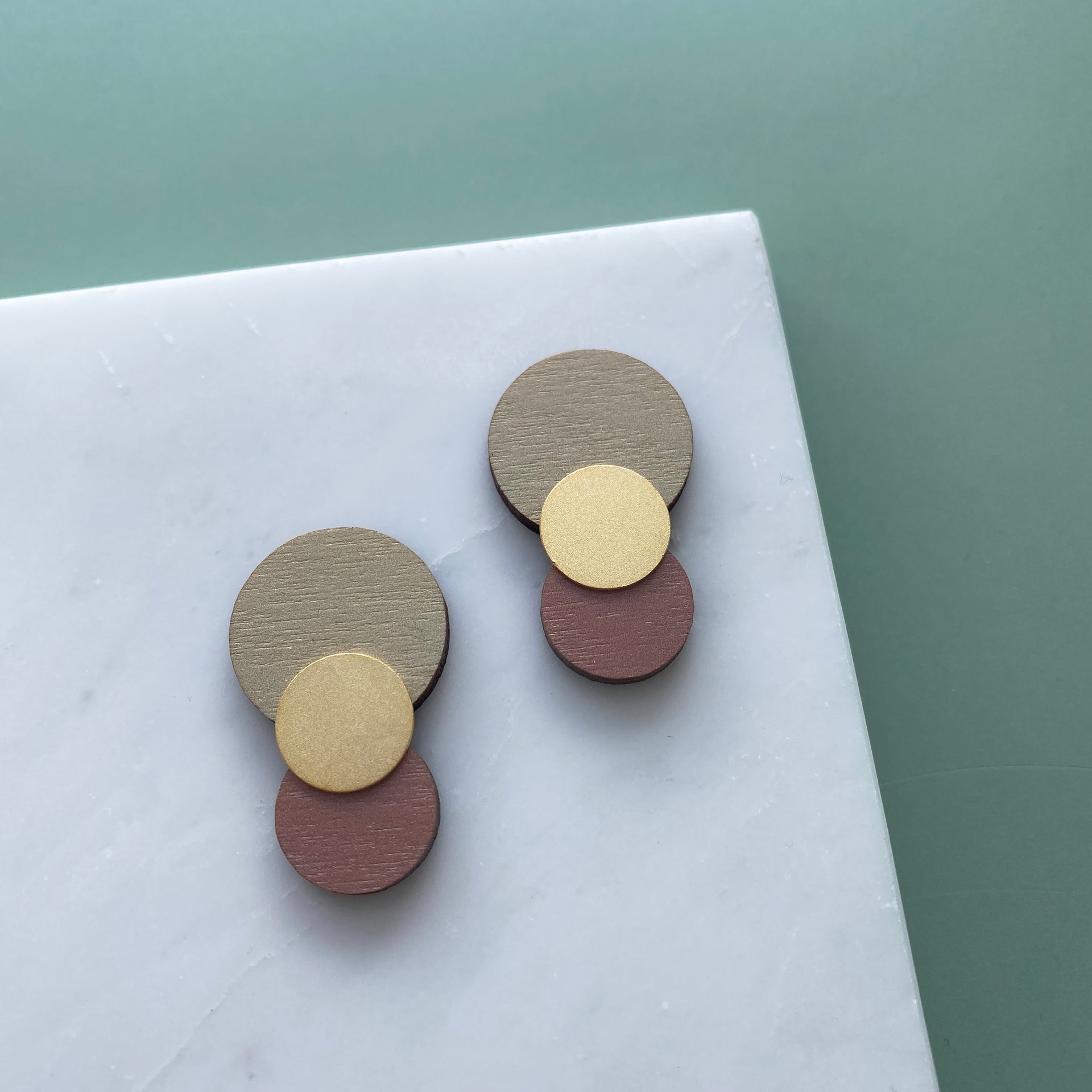 All my jewellery is made from high quality digitally printed FSC certified 3mm plywood, which is cut using a laser cutter and painted black on the reverse