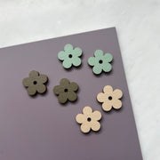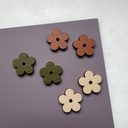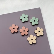 These simple floral studs come in mint, plant pink, olive, berry, lilac, orange, teal, cream and raspberry