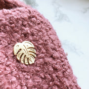 A beautiful matte gold plated tropical monstera plant pin, a must have fashion accessory for monstera enthusiasts