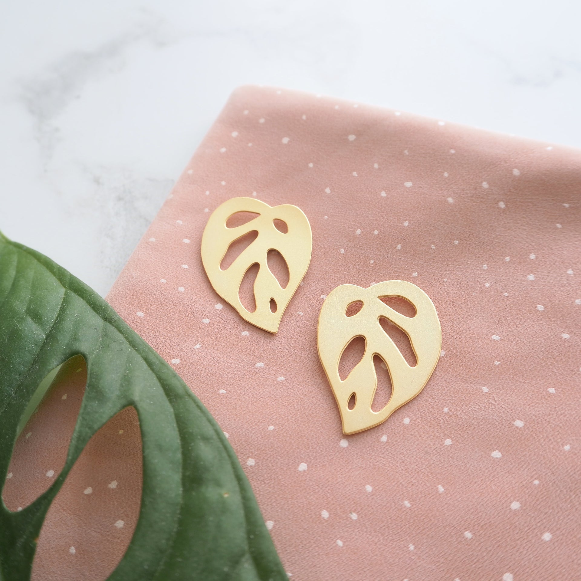 Gold Monstera Stud Earrings - Monstera Obliqua Earrings