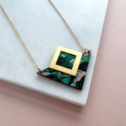 Made from FSC digitally printed ply wood and finished with a lovely matte gold plated geometric shape