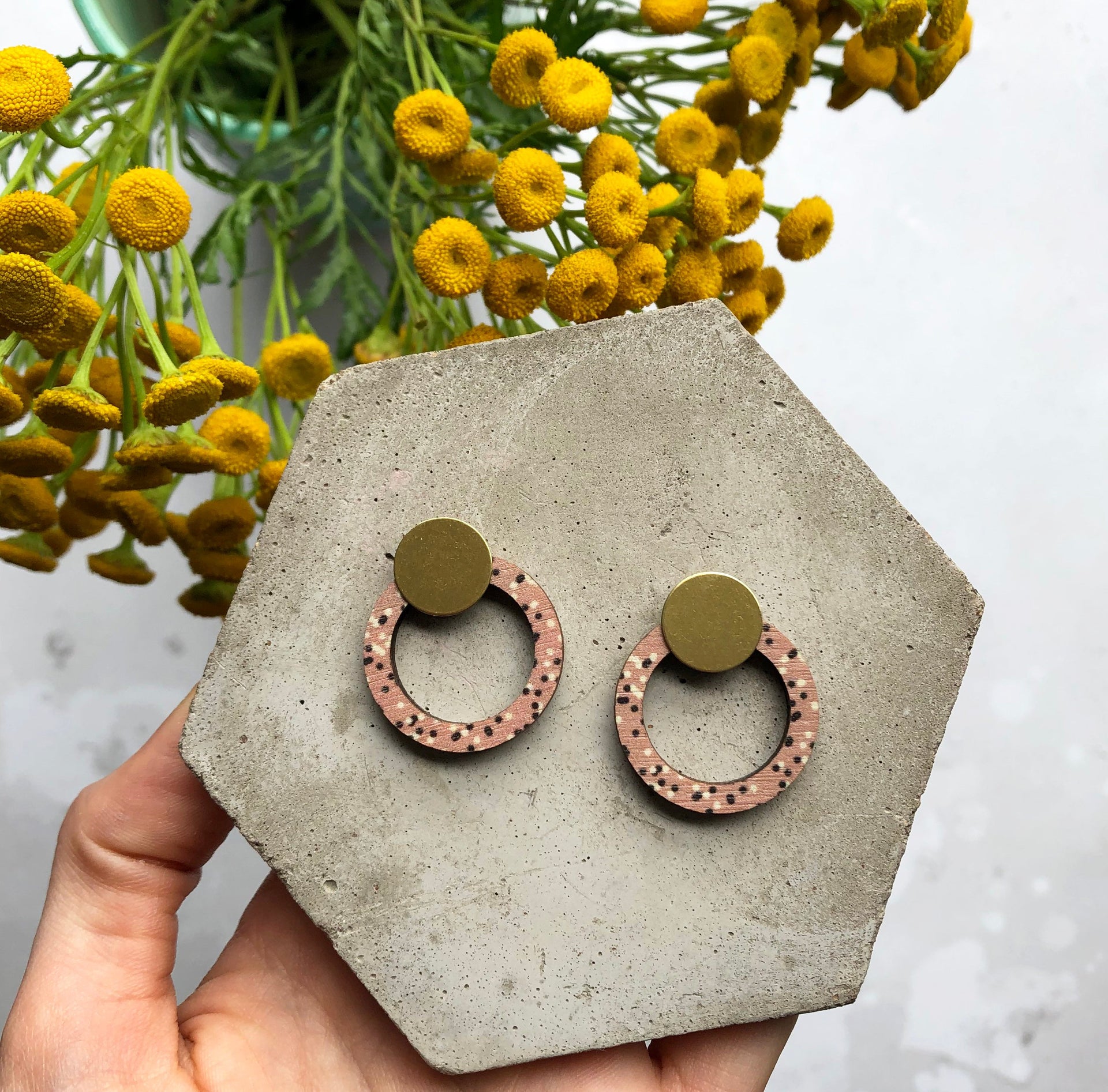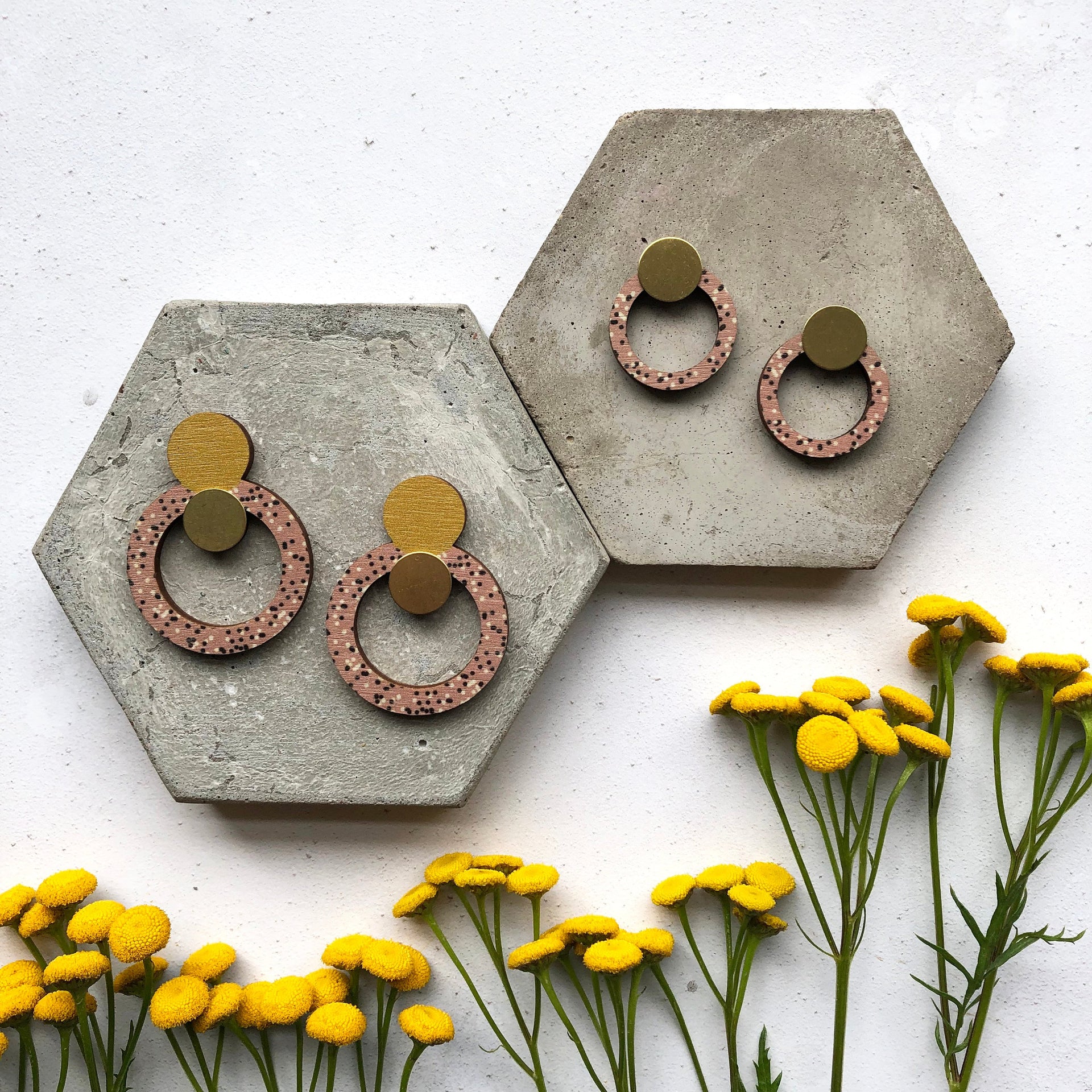 All my jewellery is made from high quality digitally printed FSC certified 3mm plywood, which is cut using a laser cutter and painted black on the reverse