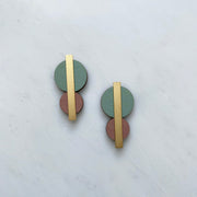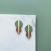 A striking pair of mint, pink and gold circle stud earrings, the perfect colour combination for spring