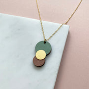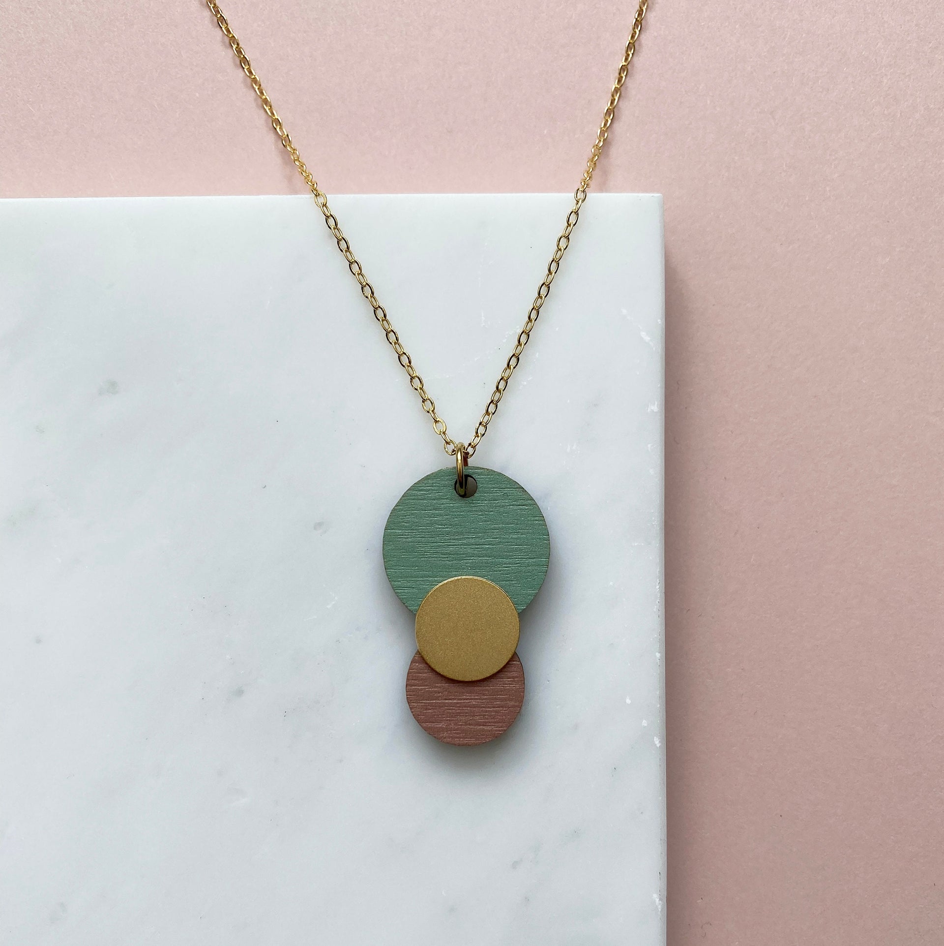 A beautiful mint & pink circle necklace, with a gold plated circle detail