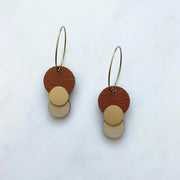 Beautiful burnt orange & cream circle hoop earrings, featuring a matte gold detailing