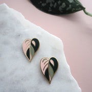 Pink Leaf Enamel Earrings