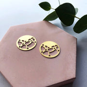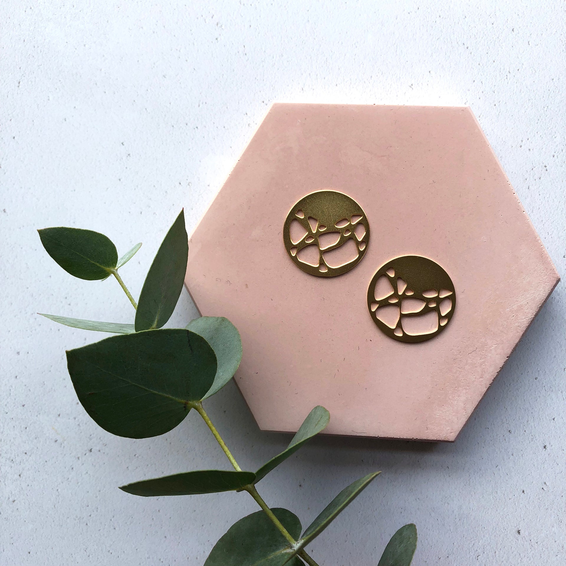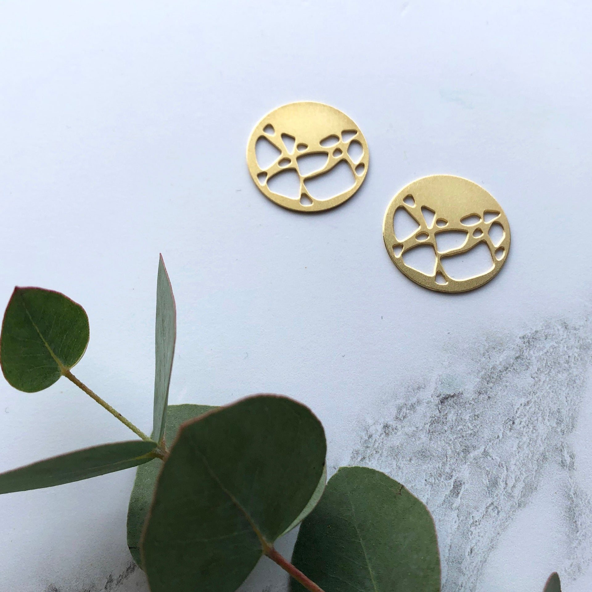 Made from laser cut nickel free brass plated with a lovely matt gold finish with gold plated earrings posts which are nickel free and hypoallergenic