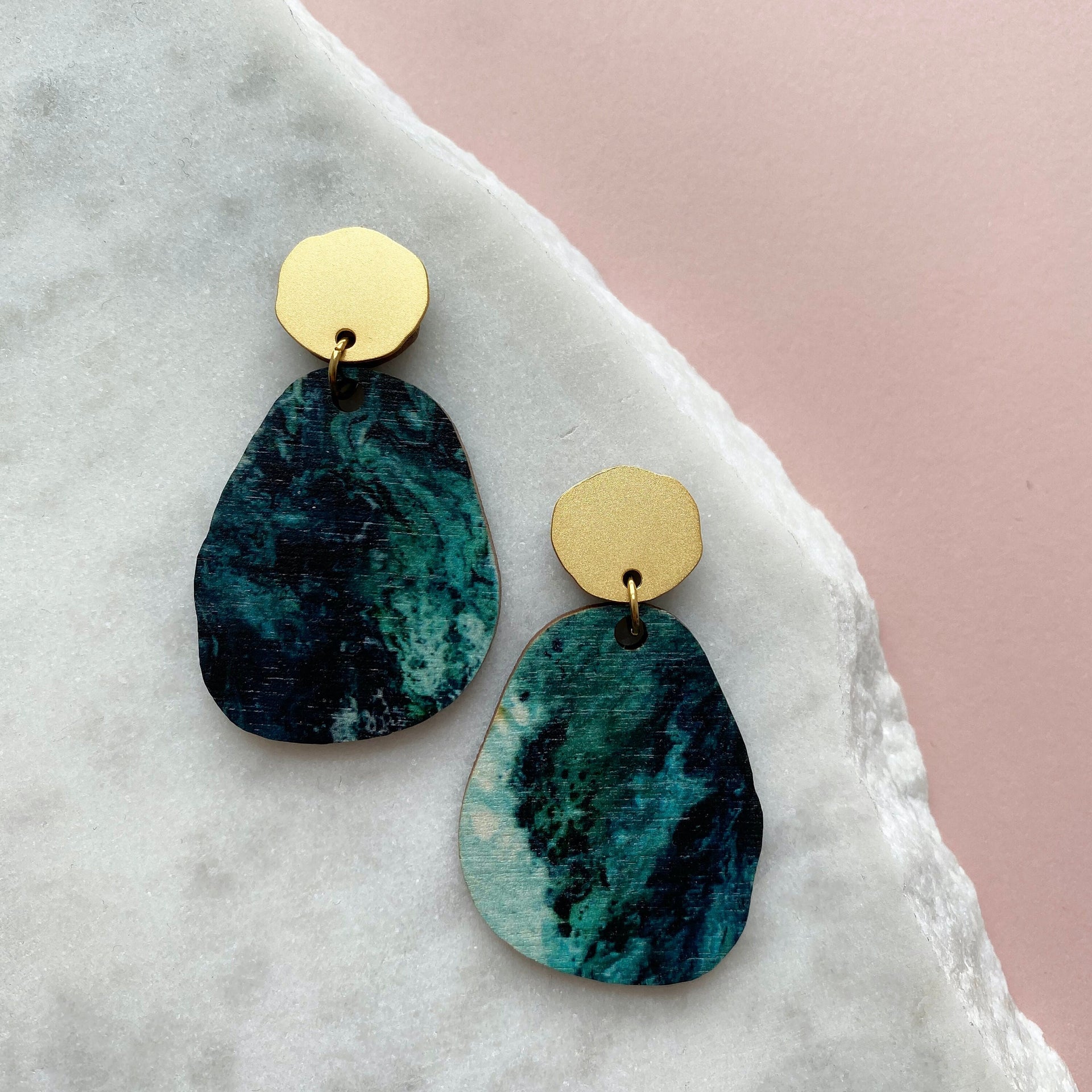 These statement drop earrings measure 5cm long the piece that sits on the ear measures 1.5cm