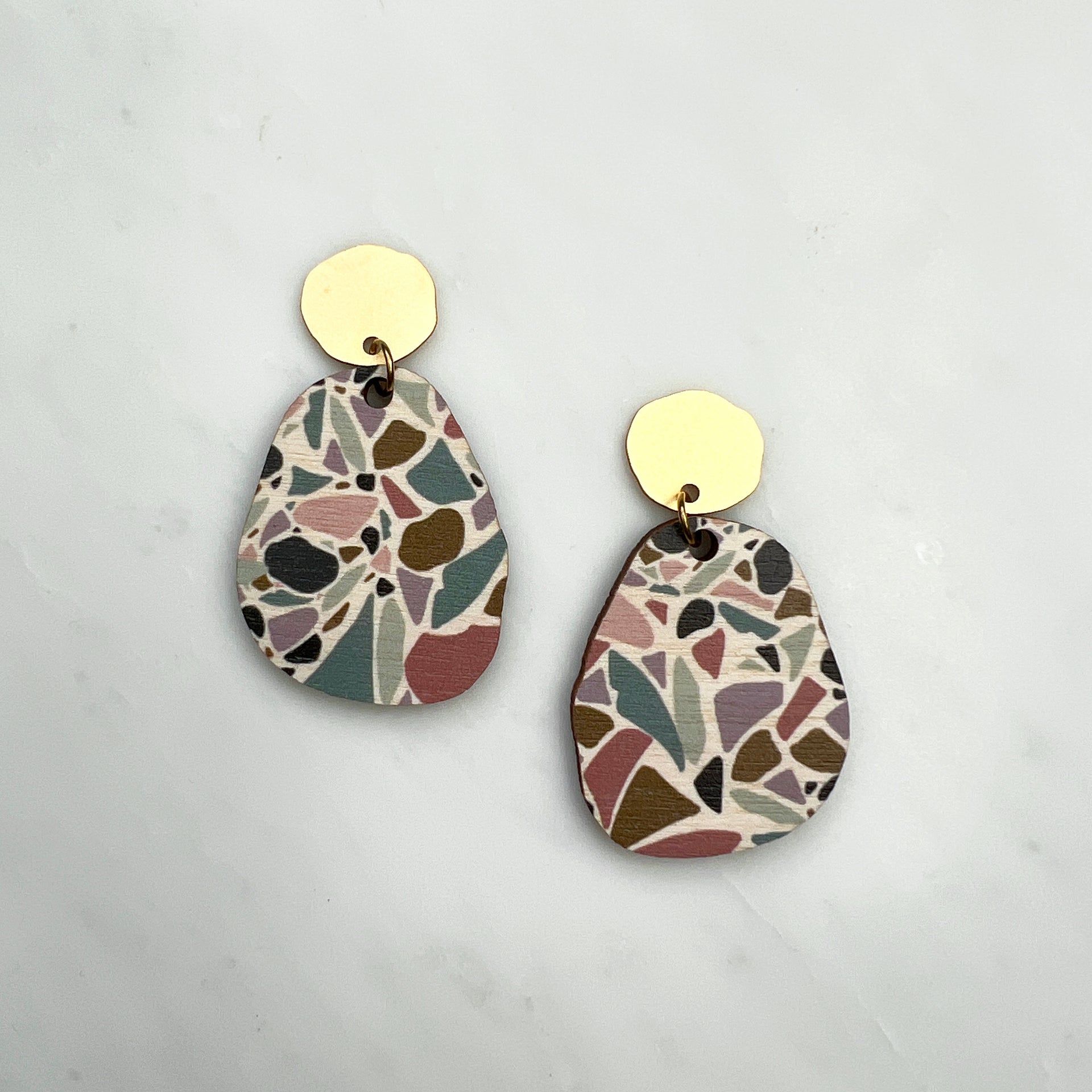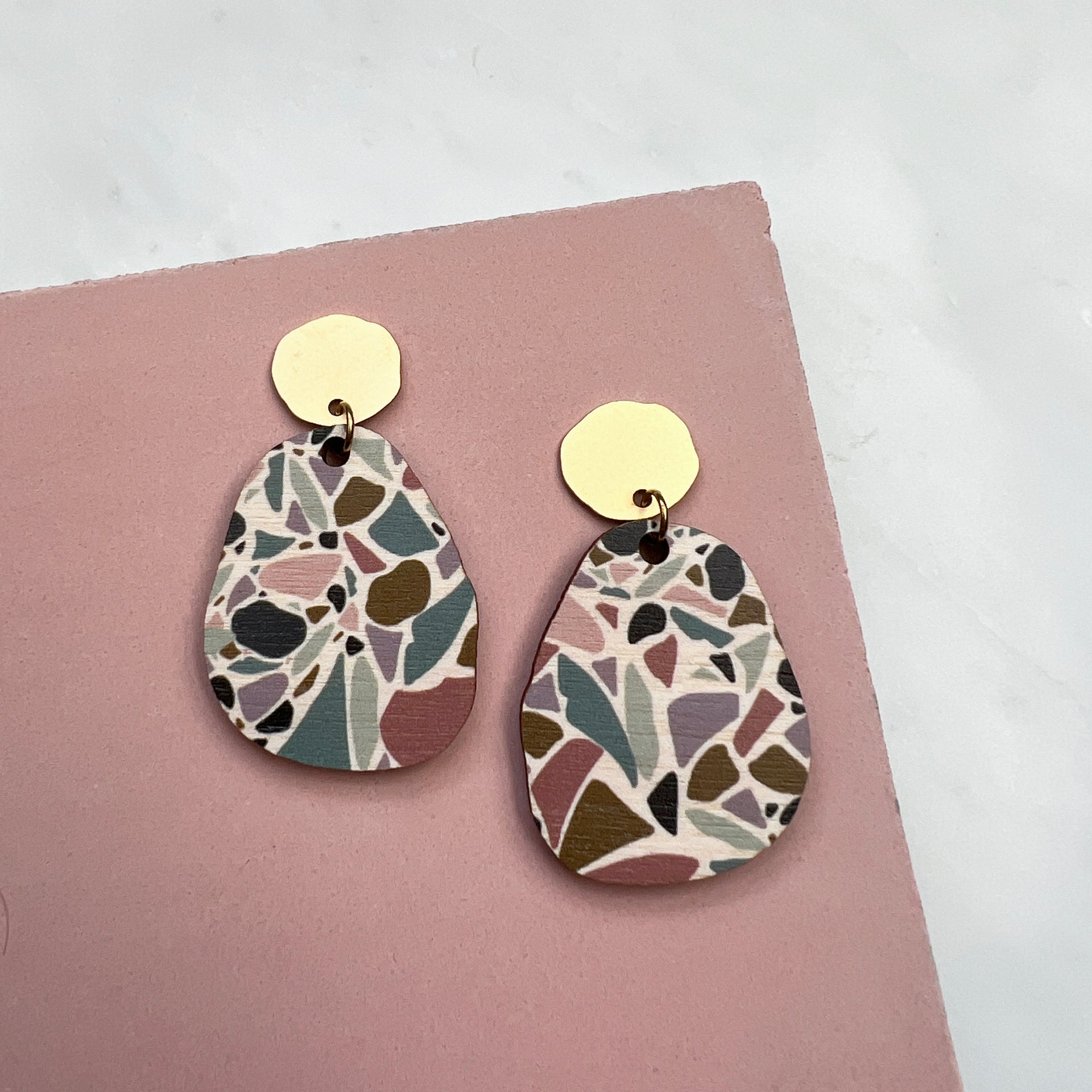 Terrazzo Statement Drop Studs - Pebble Geometric Drop Earrings